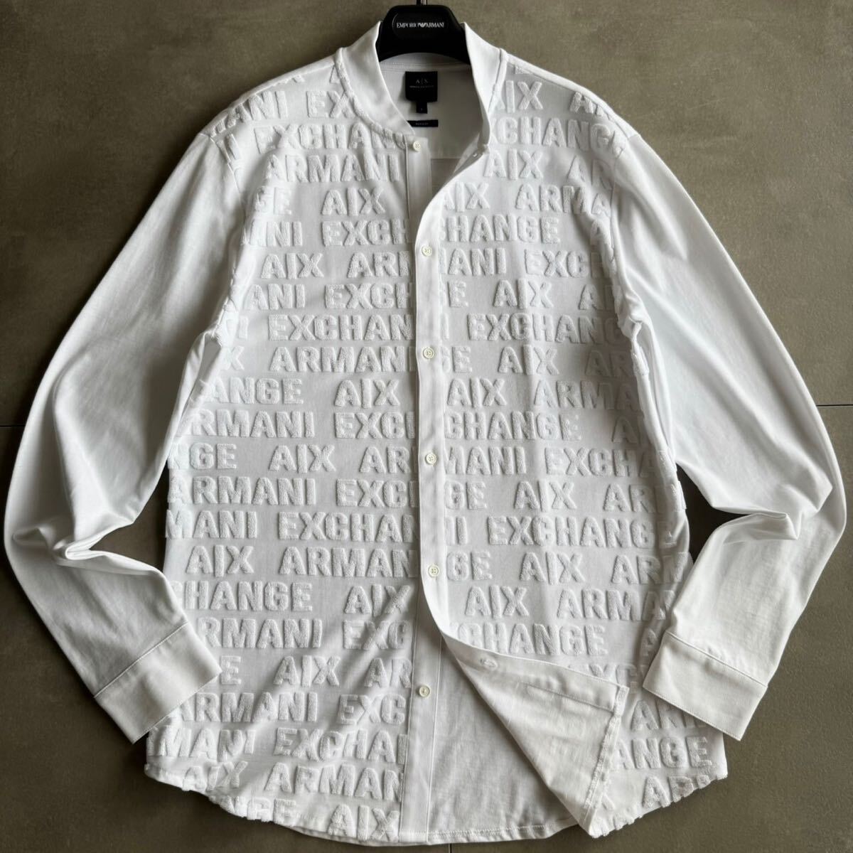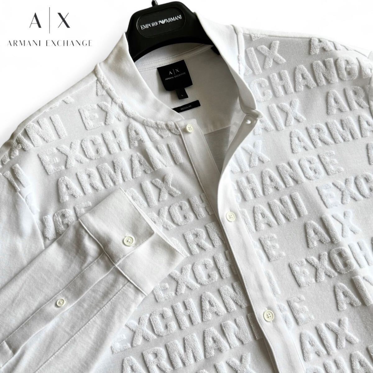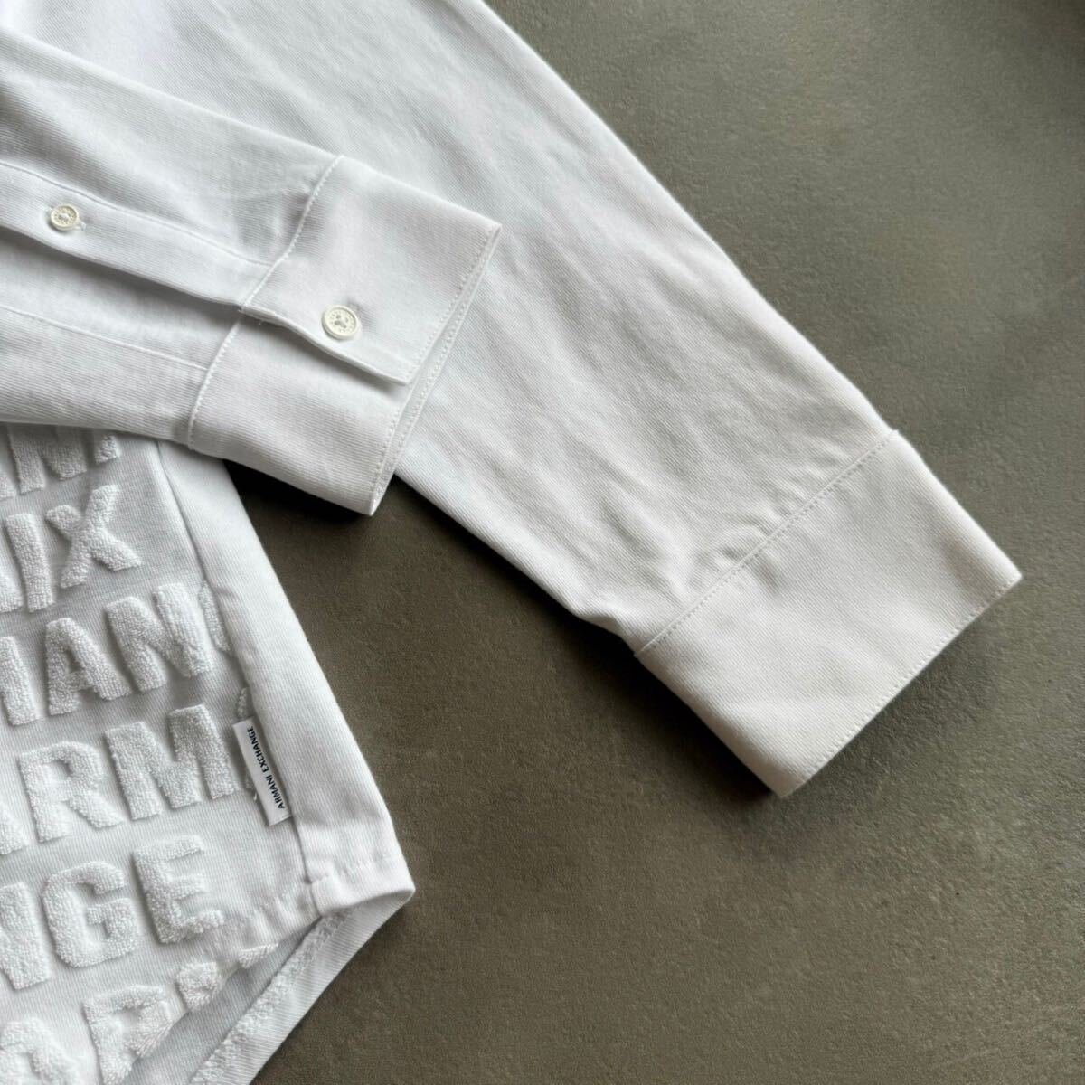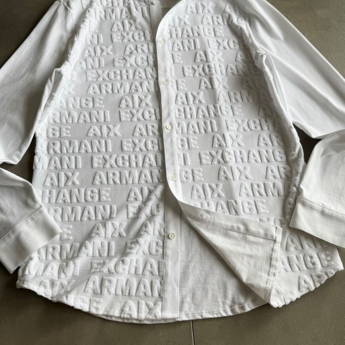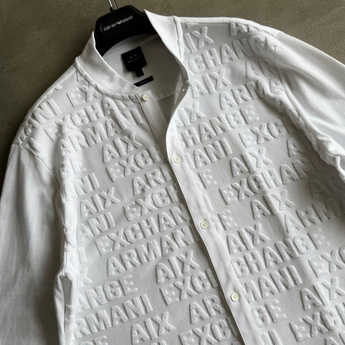 A|X Armani Exchangeは、ジョルジオ・アルマーニのカジュアルラインとして、都会的でモダンなスタイルを提案するブランド。こちらは近年モデルの長袖シャツで、全面に施されたパイル地の立体ロゴモノグラムが印象的な一着です。