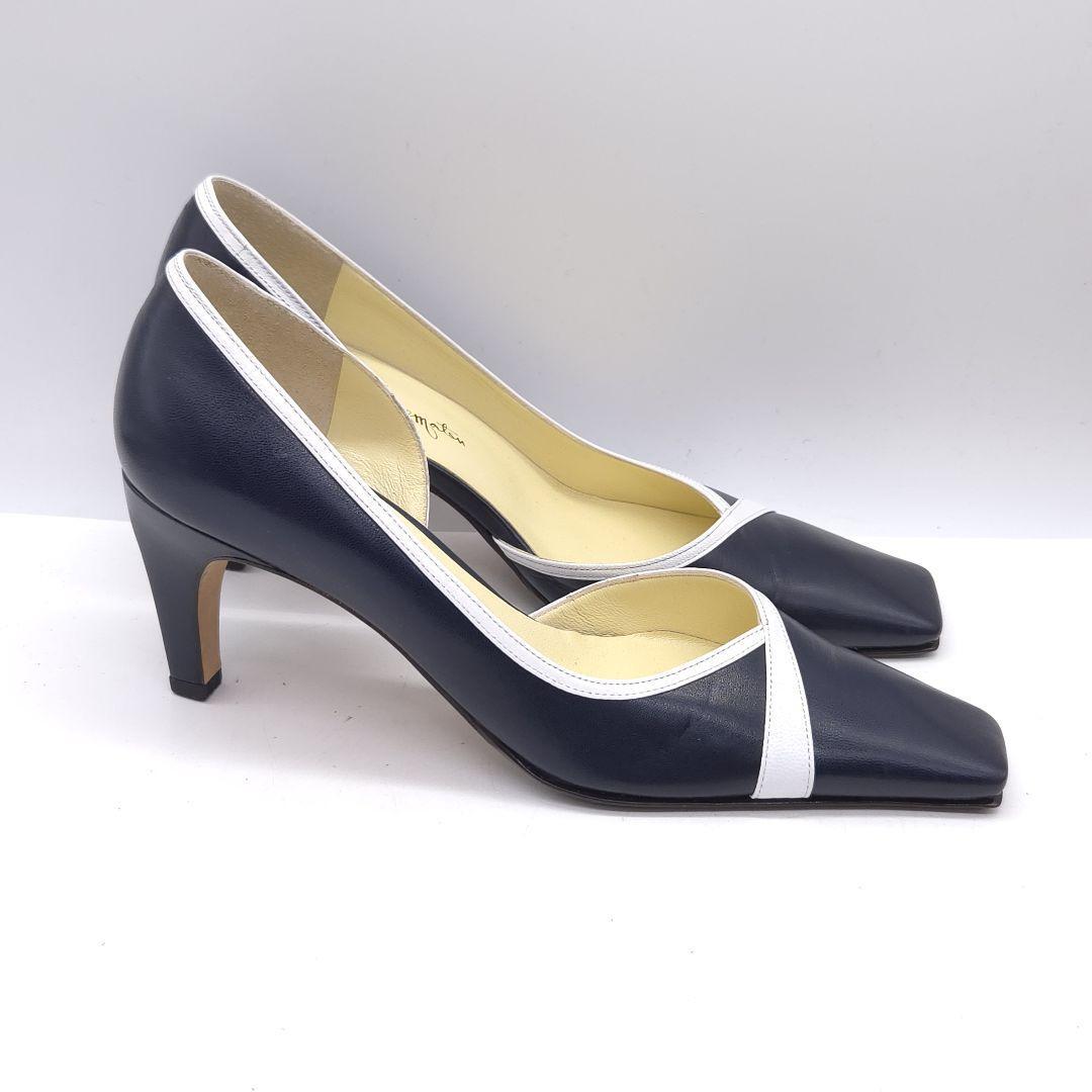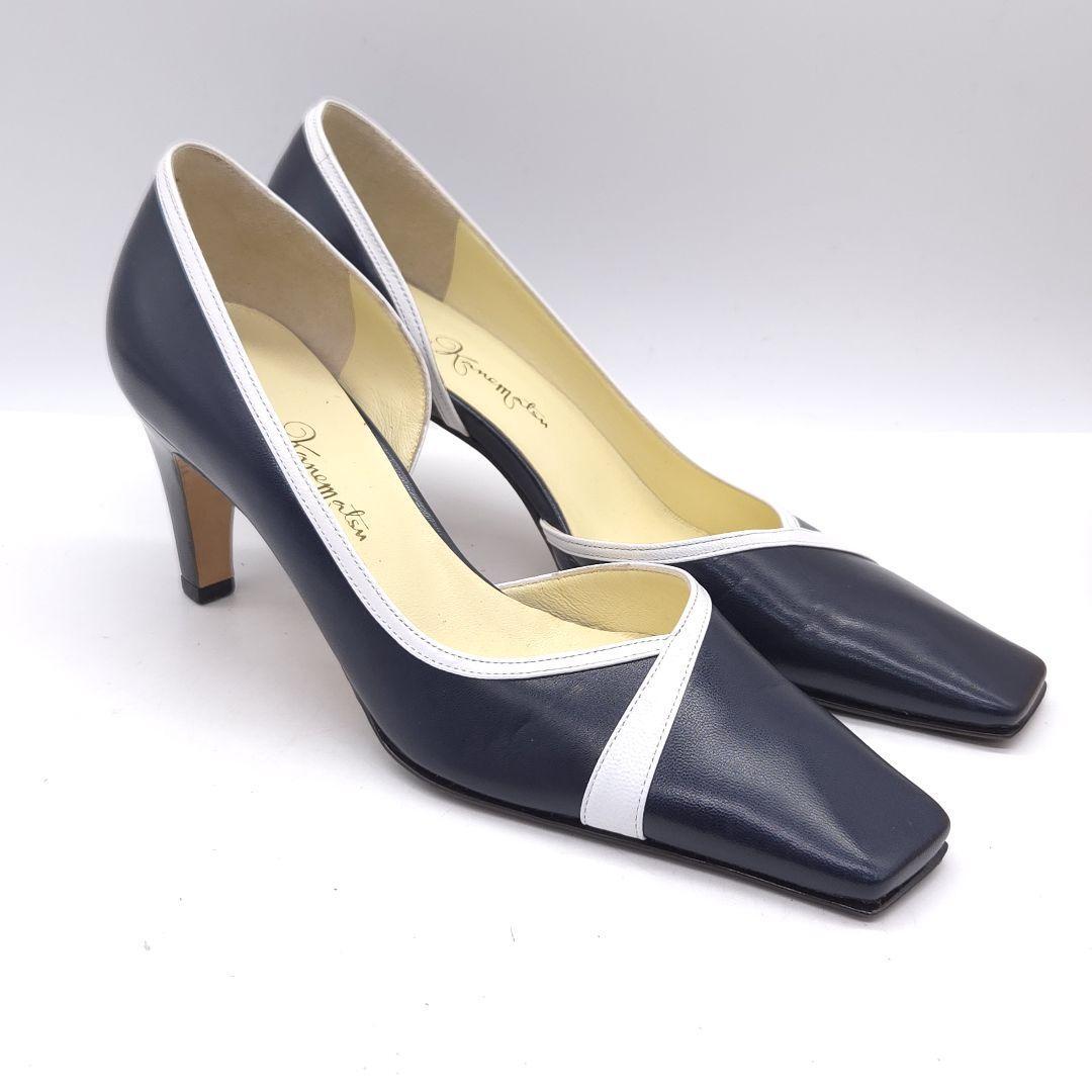 美品 GINZA Kanematsu 銀座かねまつ パンプス ヒール 21.5cm ネイビー クリーニング済み