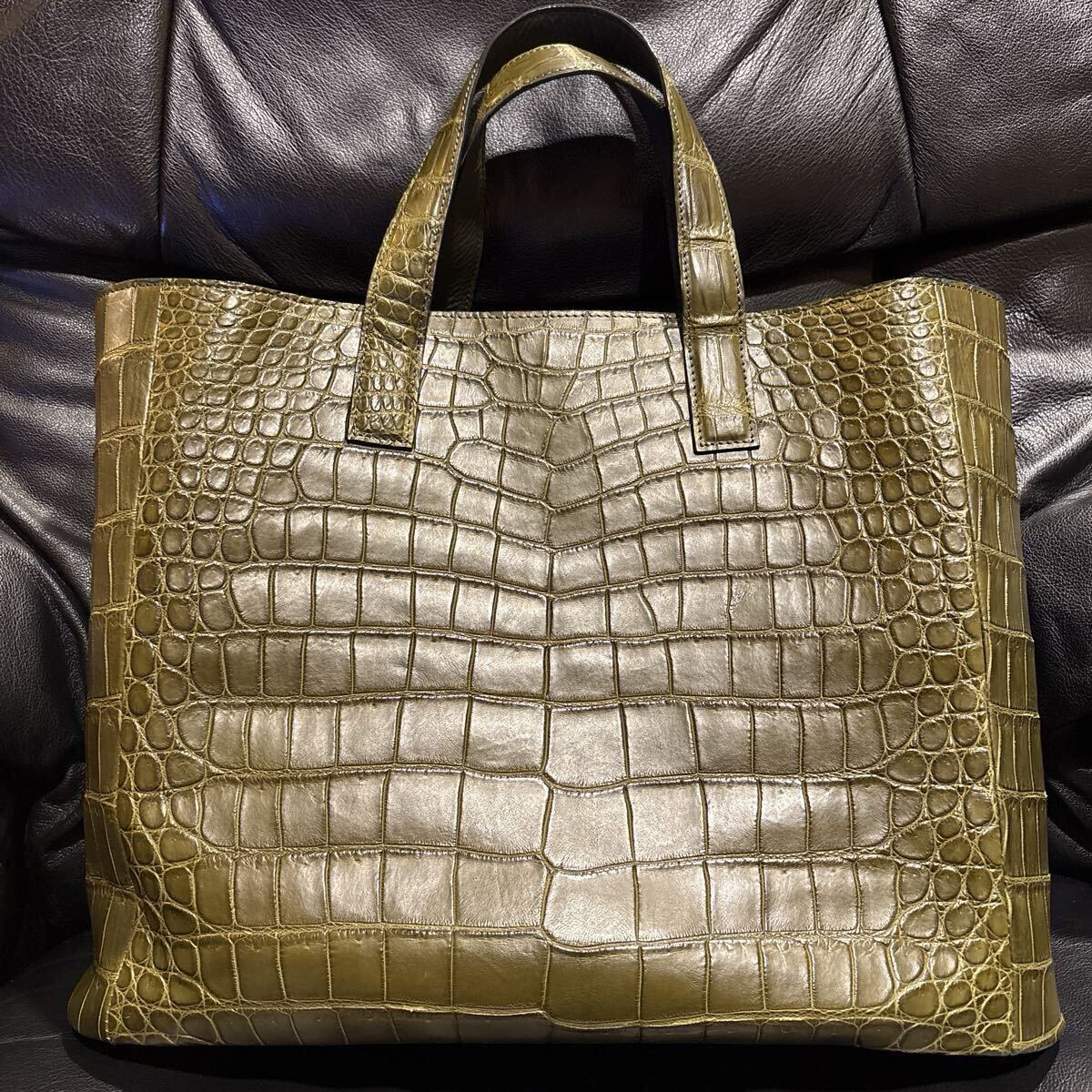1000円スタート【新品同様】現行品 定価¥396,000(税込)山本製鞄 クロコダイル トートバッグ M 日本製 ワニ革 鰐革 ビジネスバッグ