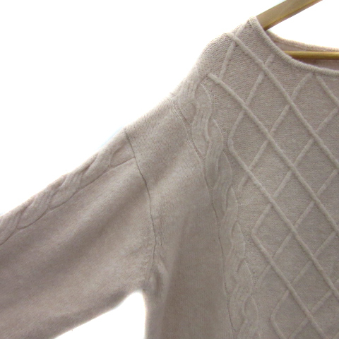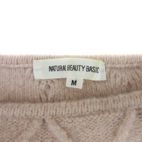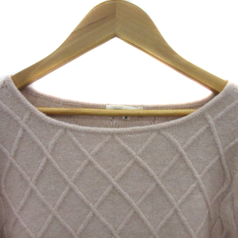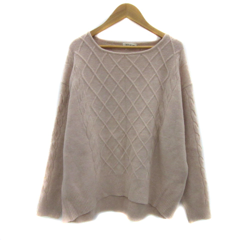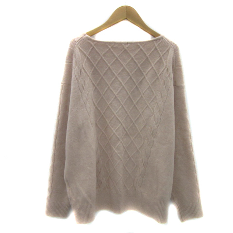 ナチュラルビューティーベーシック ニット セーター 長袖 ラウンドネック アーガイルチェック柄 オーバーサイズ M ピンク レディース