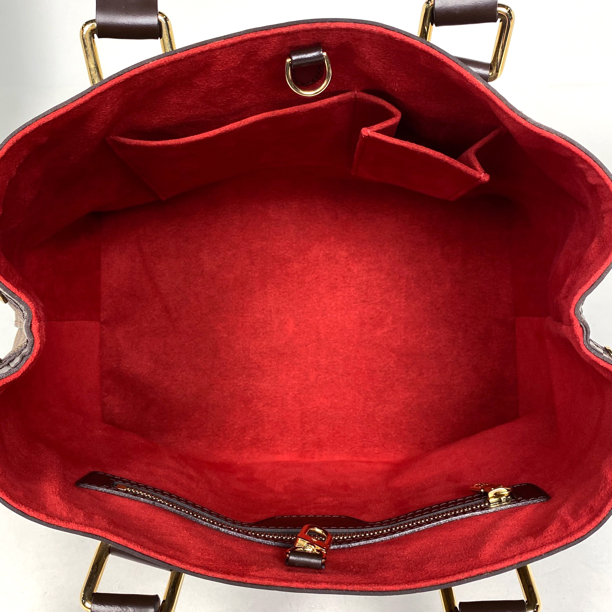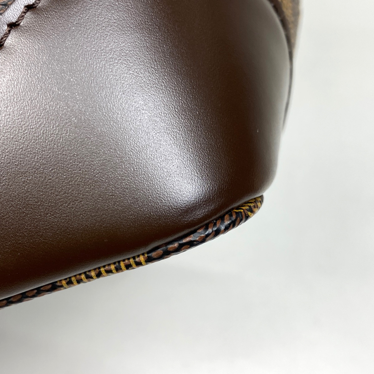 | 《全体》型崩れ、生活臭、スレ、キズ、シワ、汚れ 《内側》毛羽立ち、浮き、押し跡 《ハンドル》へたれ、剥がれ、押し跡 《金具》小キズ、くすみ 保存袋に劣化あり。 |
