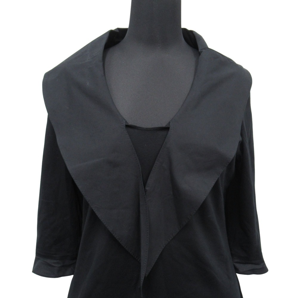 商品名:YUKIKO HANAI ユキコハナイ ビッグカラー ドッキング カットソー 七分袖 ストレッチ サイズ8 黒 ブラック