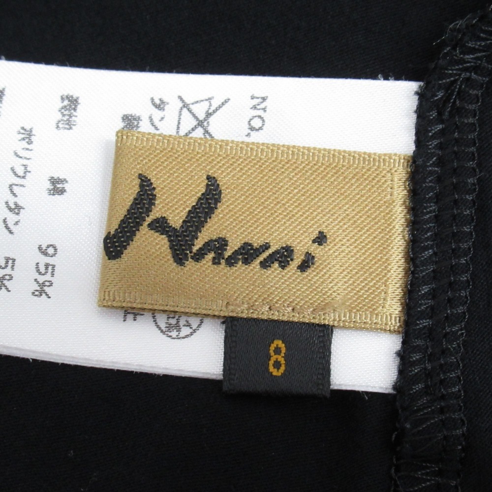 美品 YUKIKO HANAI ユキコハナイ ビッグカラー ドッキング カットソー 七分袖 ストレッチ サイズ8 黒 ブラック