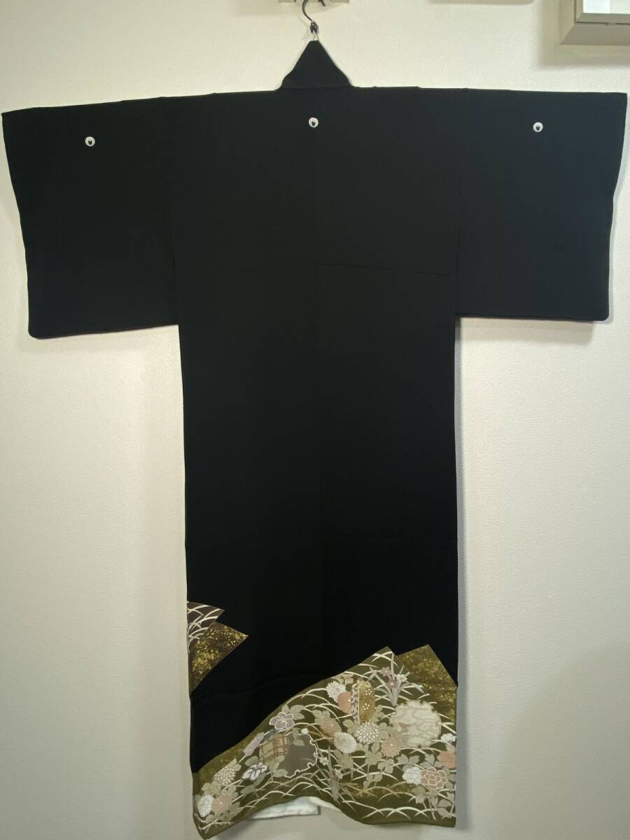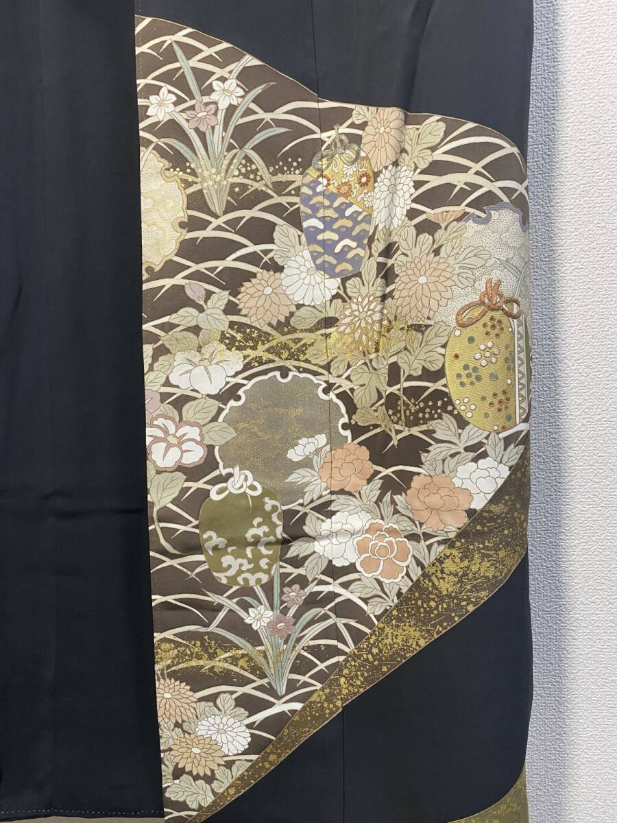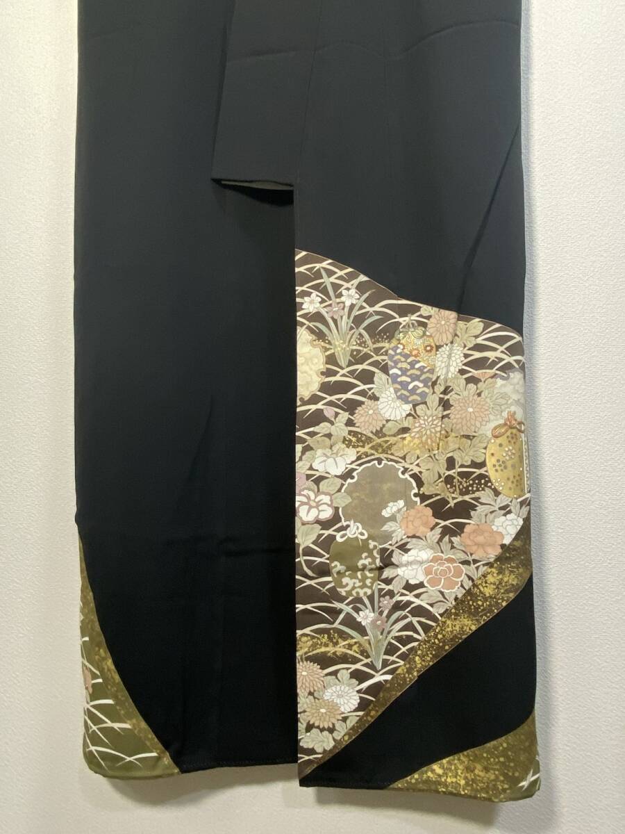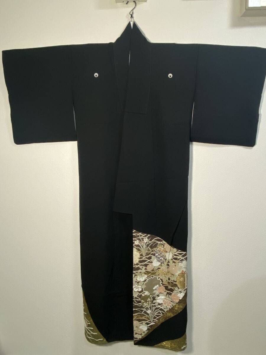 黒留袖 金箔 手刺繍 和装 和服 アンティーク リメイク 着物(10900)
