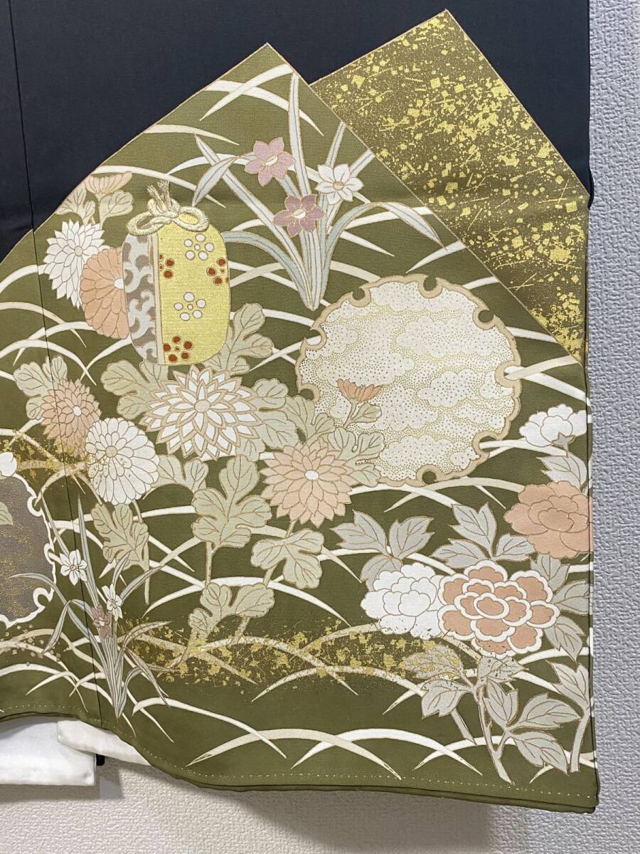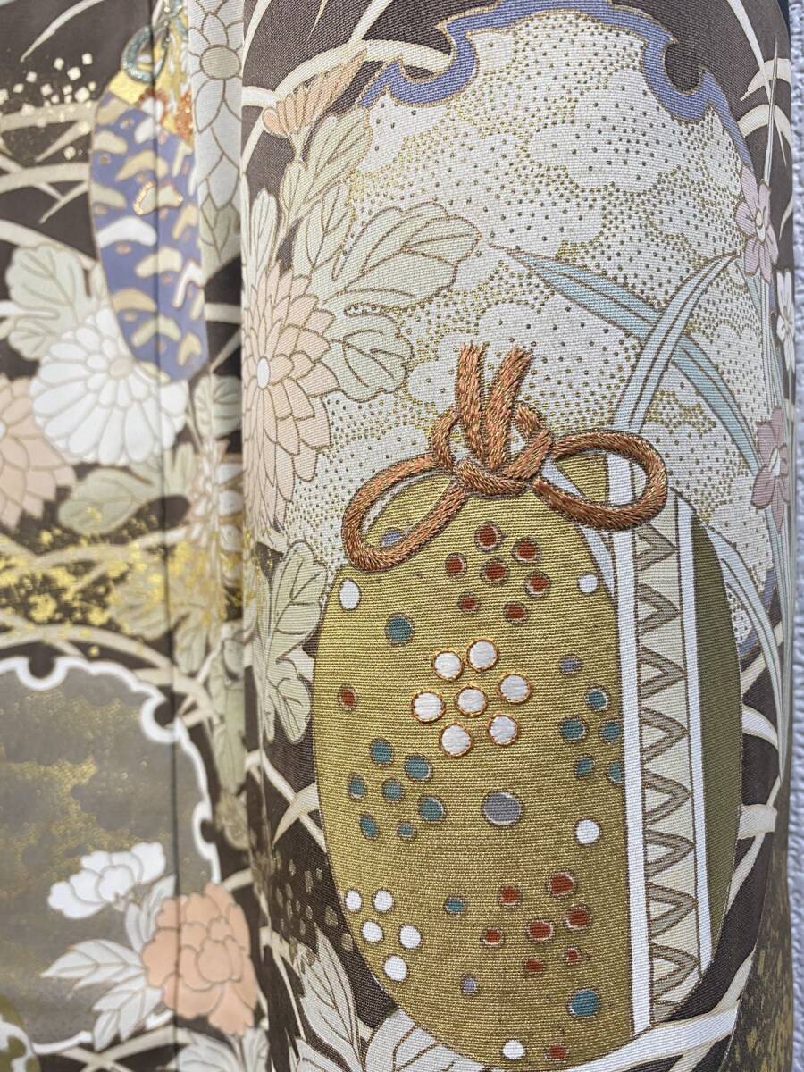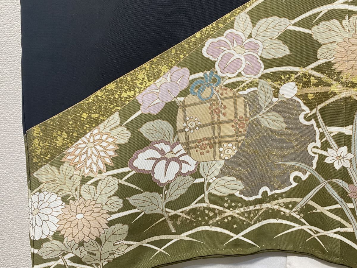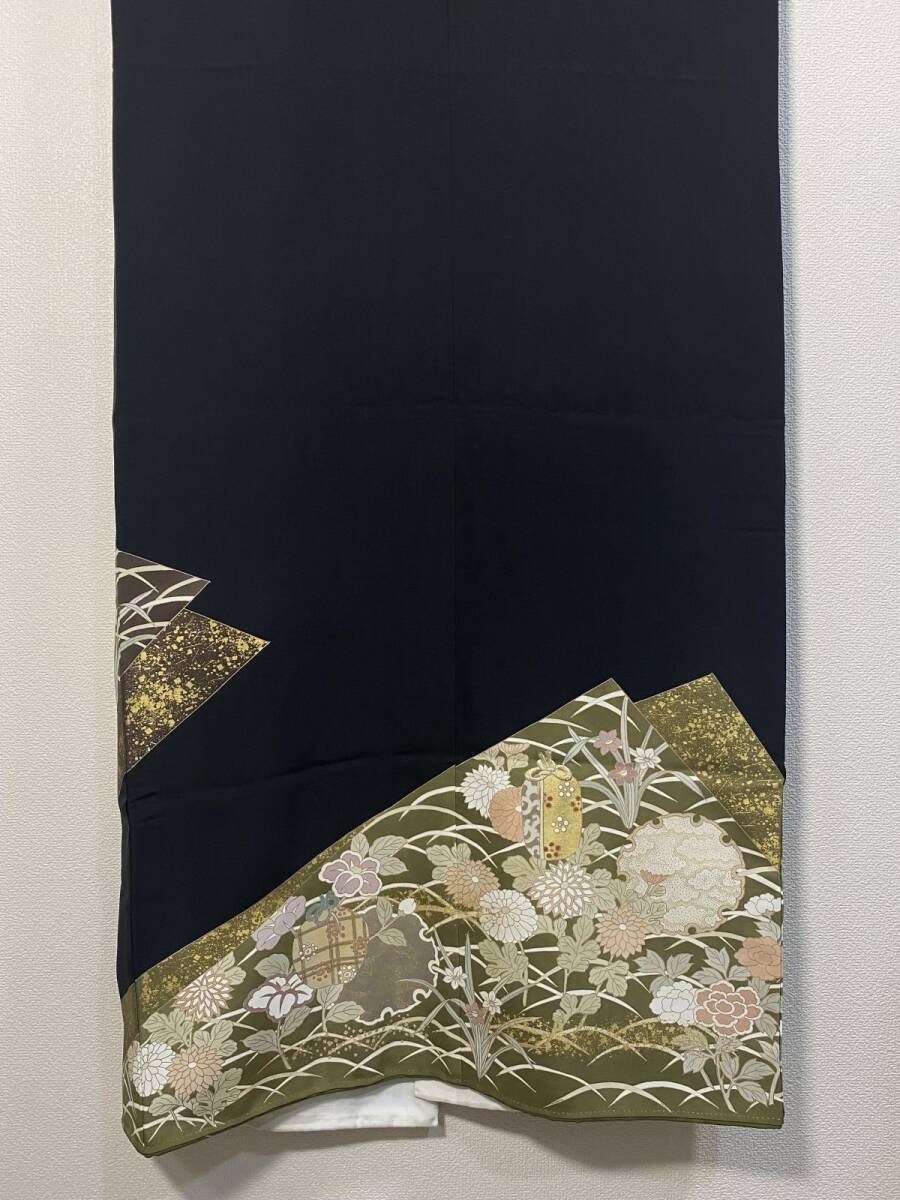 黒留袖 金箔 手刺繍 和装 和服 アンティーク リメイク 着物(10900)