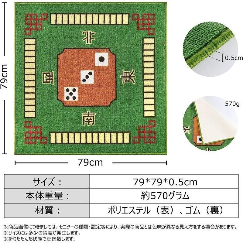 【麻雀マット】自宅で麻雀を打つ際に、机を傷つけないために必要となる麻雀マット。カーペットタイプで持ち運びにも便利です。パイの滑りが良く雰囲気が更なる燃え上がります。用途に合わせ、より快適に麻雀をプレイすることができます。