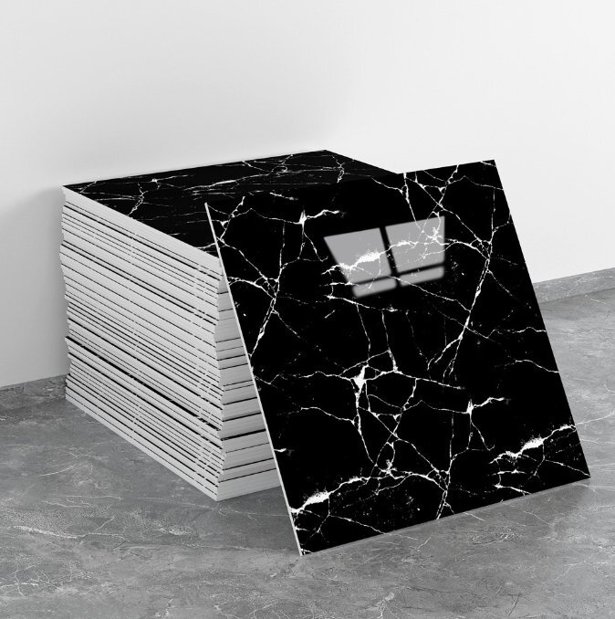 壁紙自接着防水防湿壁面フェルト板キッチン壁板模造大理石背景壁タイル貼りシール50枚▲ブラック