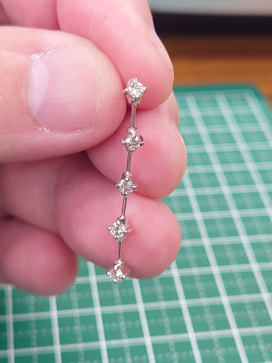 ダイヤモンド(5ストーン)がキラキラと輝き、ゆらゆらと揺れるロングピアス(スタッド)になります。
