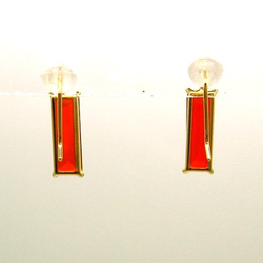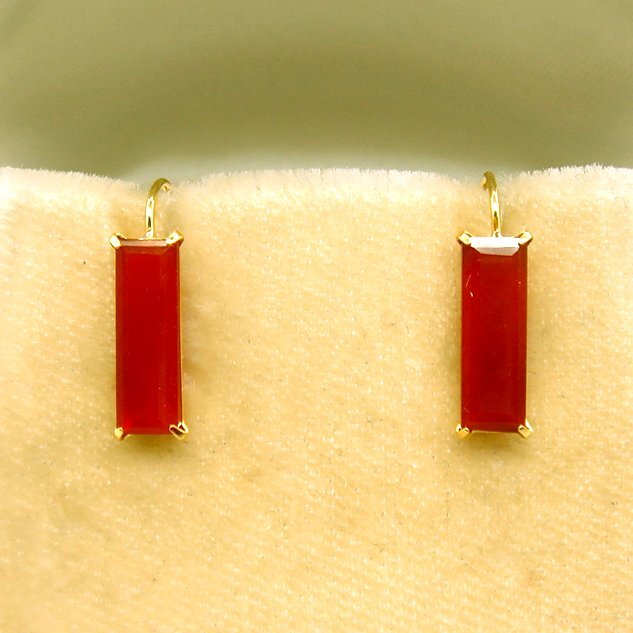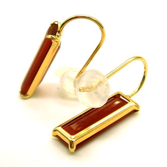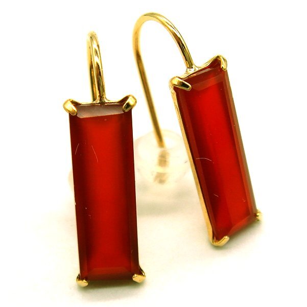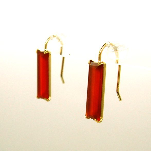 極端に細長いバゲットカットのカーネリアンが、シャープでスタイリッシュ、そしてスポーティなピアスです。