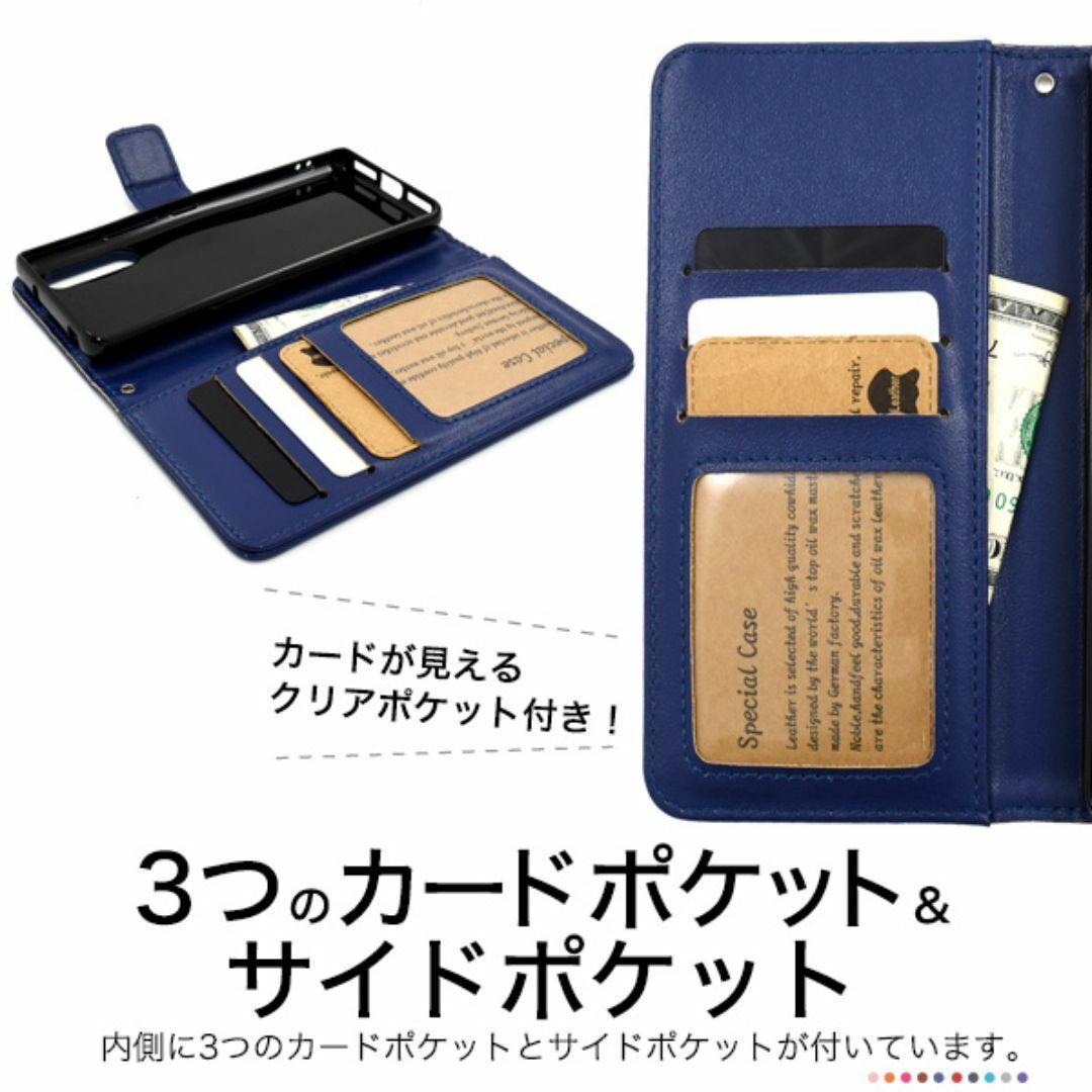 カラフルな5色展開のカラーレザー手帳型ケース。