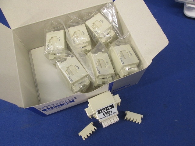 LANモジュラジャック(Cat5e)(7個入)(ミルキーホワイト)(キズ・潰れ・汚れ・破れ有) サン電子 LMJ-5E