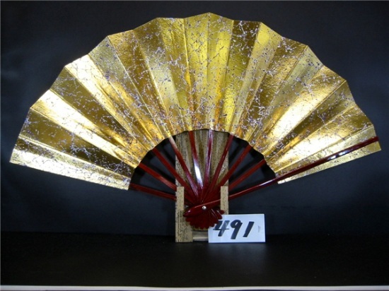 舞扇子 A491 金箔モミ柄 紫もみ 骨タメ塗り 【箱なし】