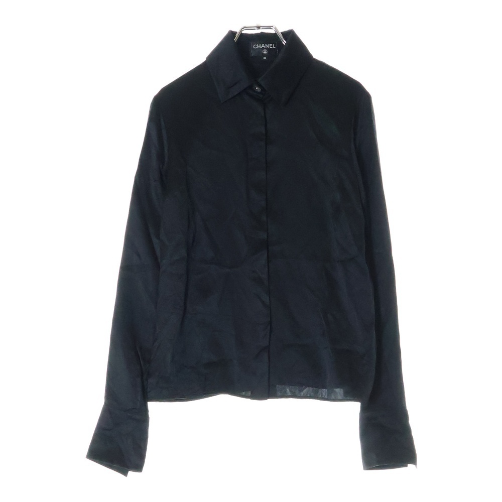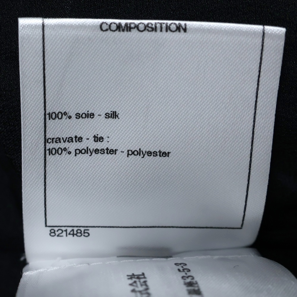 CHANEL シャネル リボン付き シルク 比翼ボタン ロングスリーブ 長袖ブラウス シャツ ブラック レディース P54194V14874