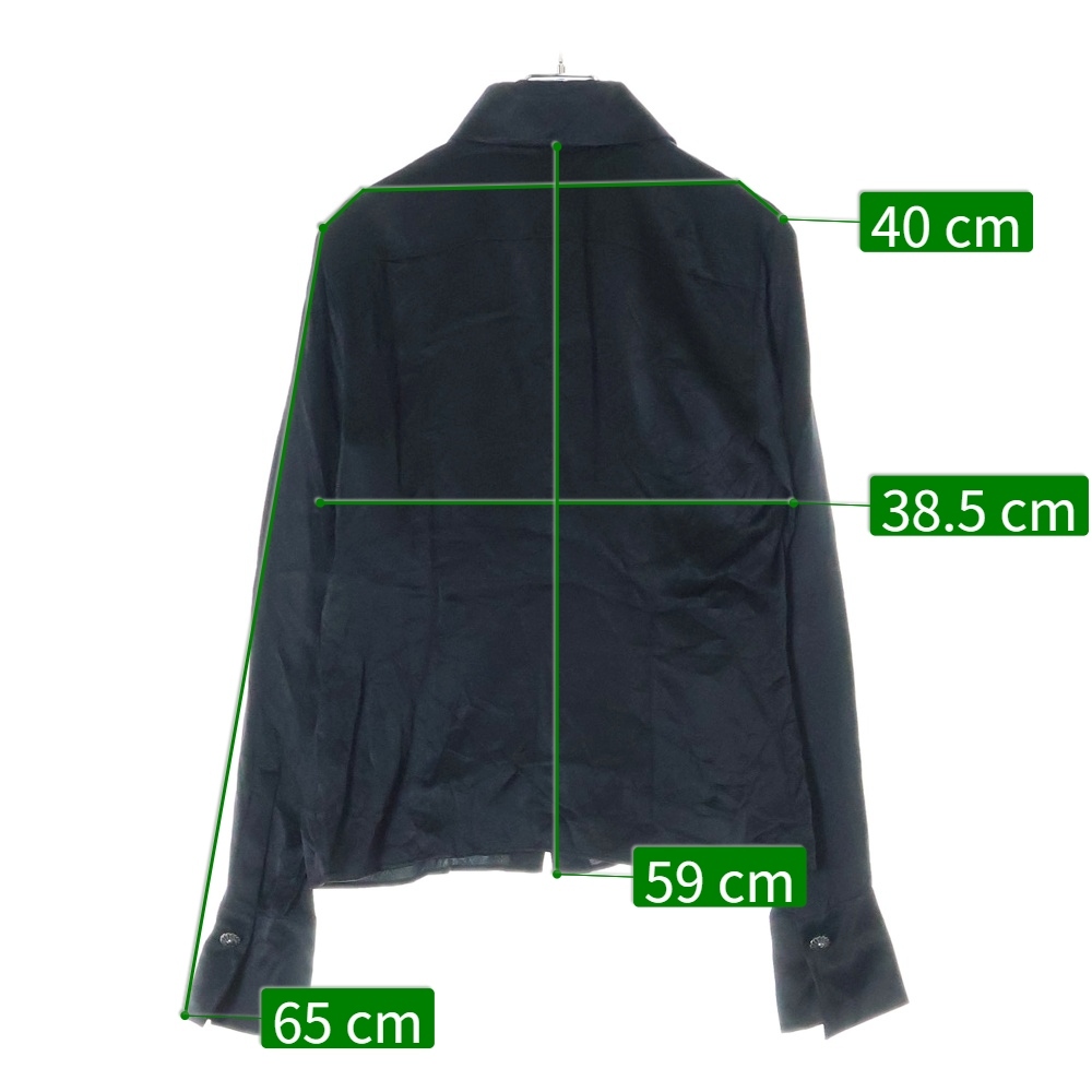 品名リボン付き シルク 比翼ボタン ロングスリーブ 長袖ブラウス シャツ ブラック レディース P54194V14874