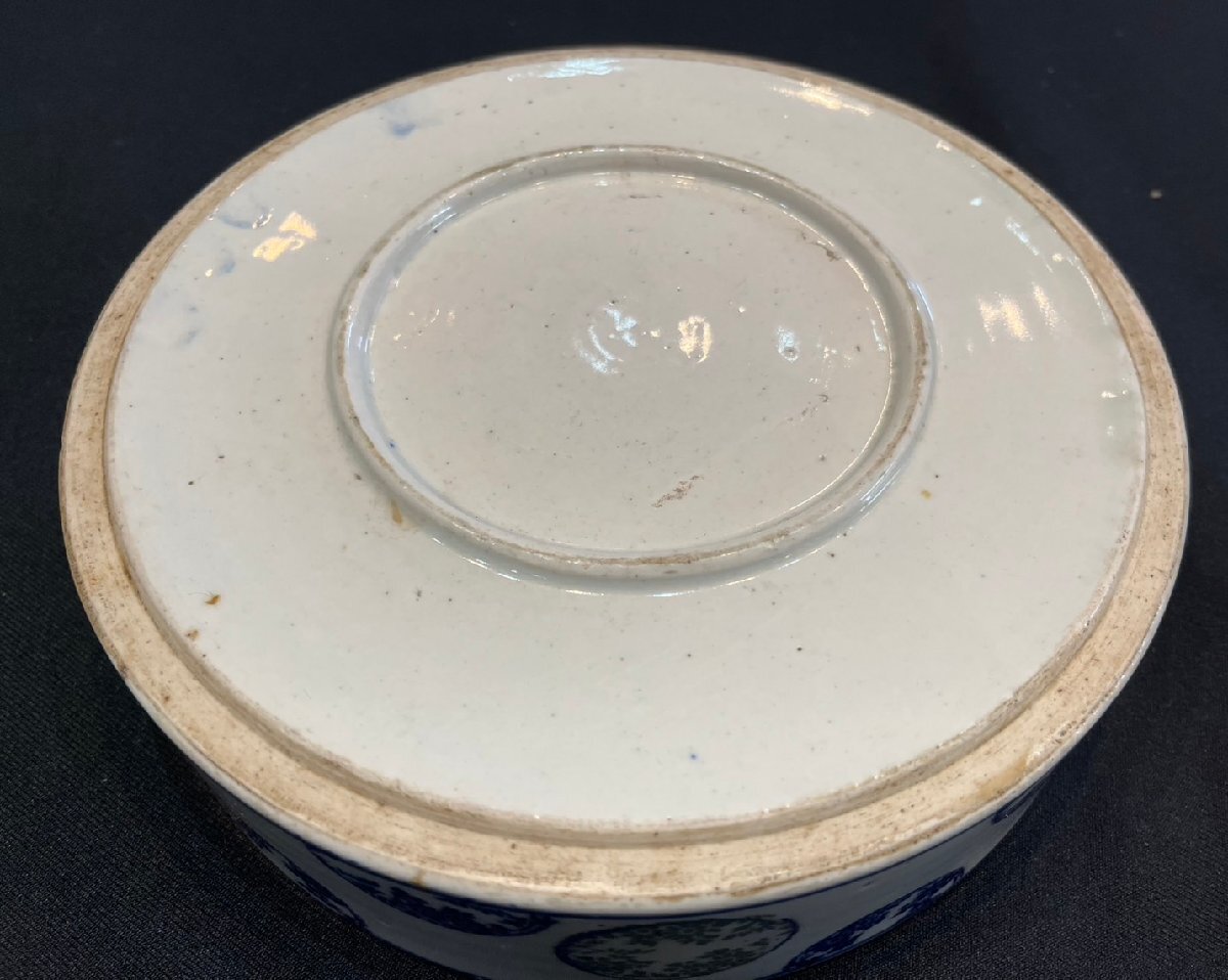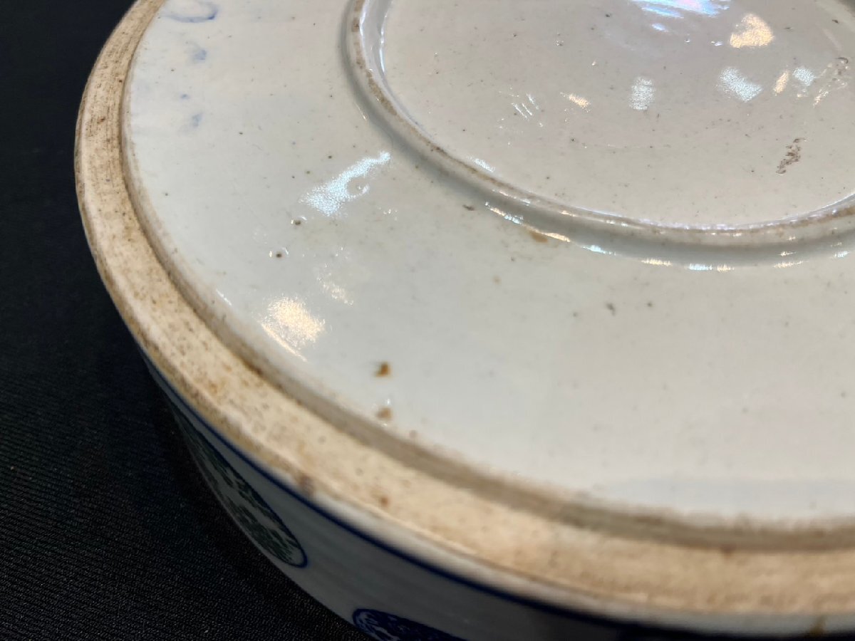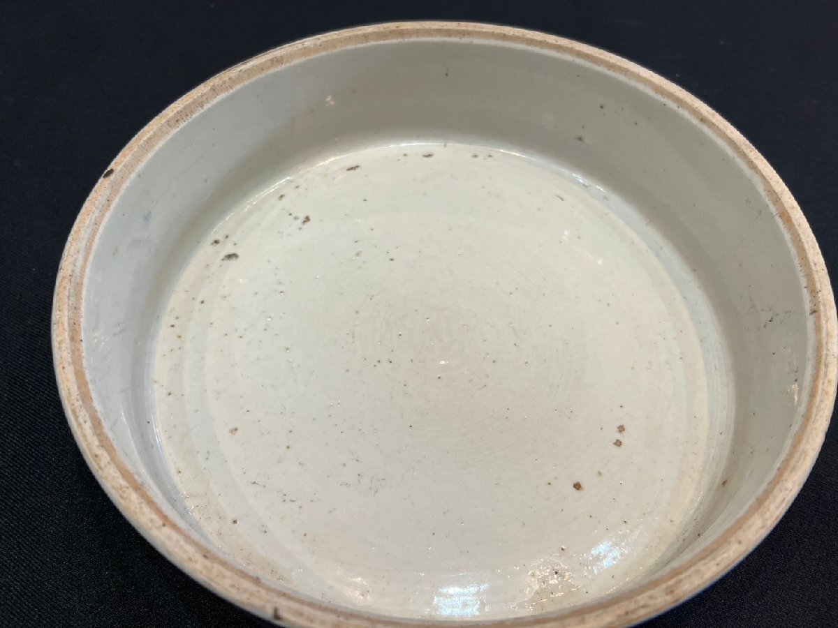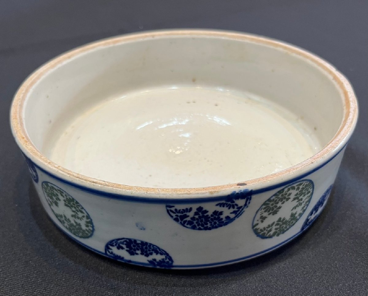 こちらは  ヴィンテージ アンティーク 陶器製 重箱 1段 骨董品 染付丸紋 伊万里 有田 サイズ(約)直径20.5×深5.5cm になります。