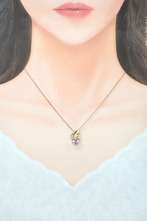 コメントミキモトの、淡水パールでデザインされたブドウモチーフがユニークで上品な雰囲気のネックレスです。肌なじみの良い落ち着いた色合いで、内側からエレガンスを引き出してくれるようなお品です。