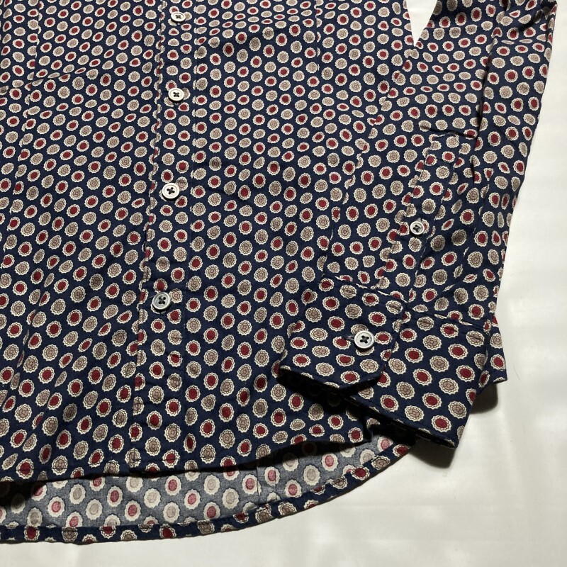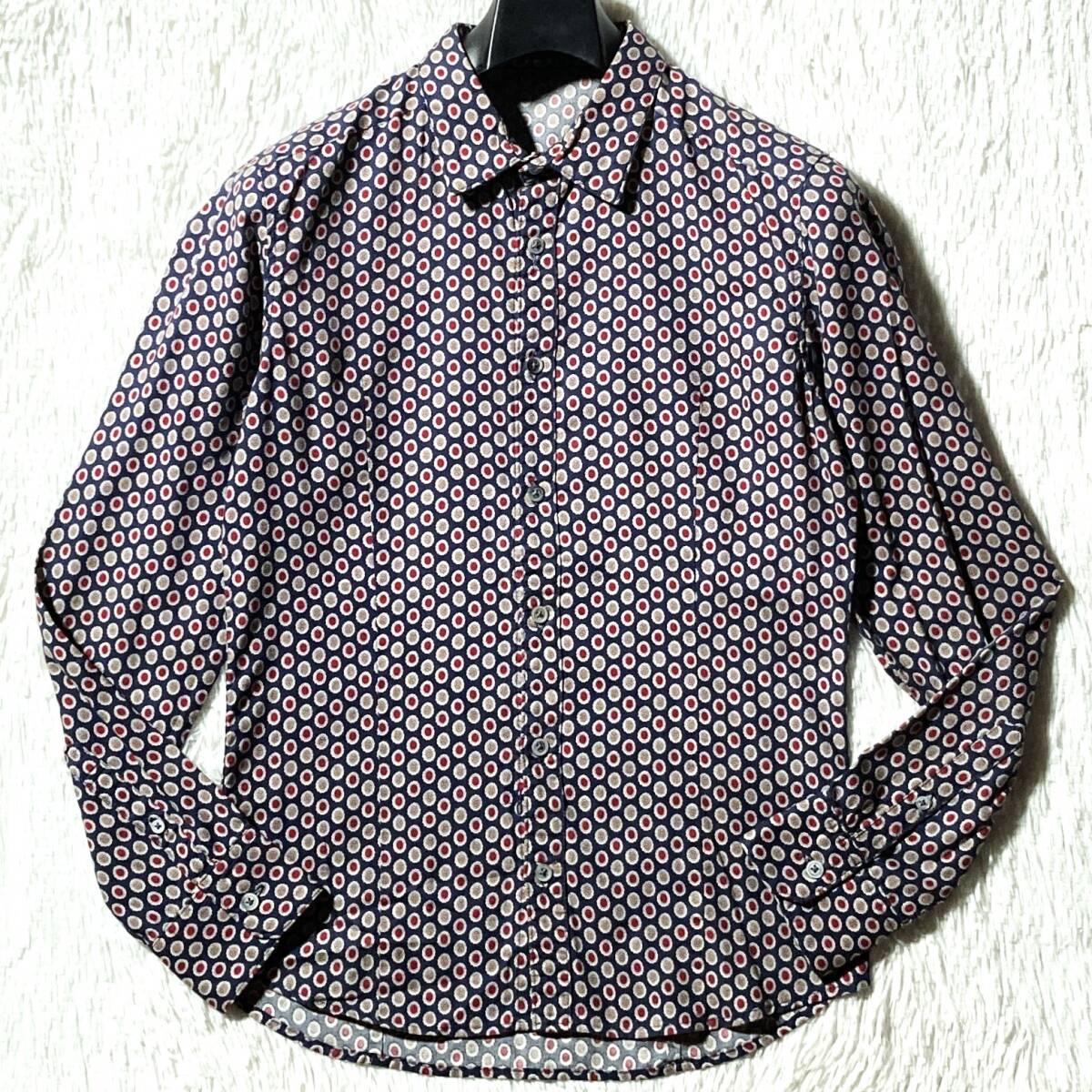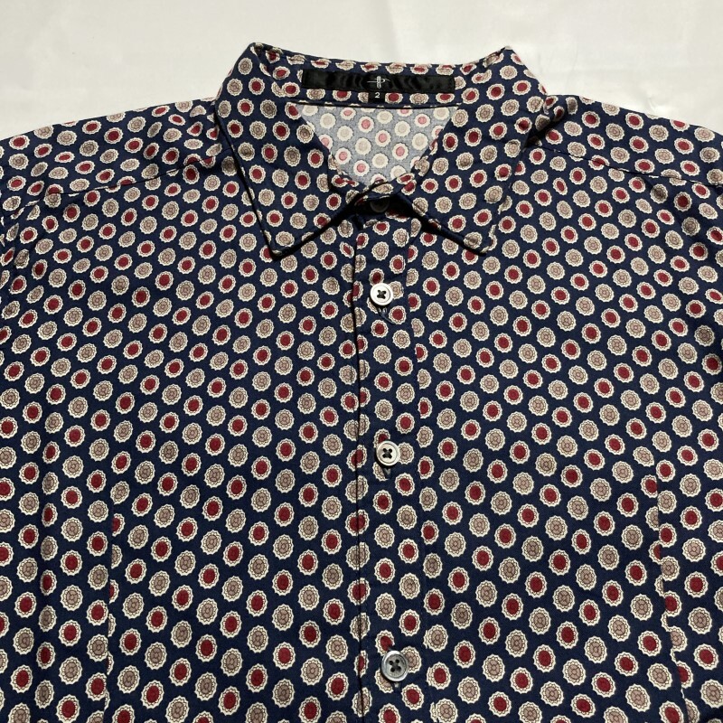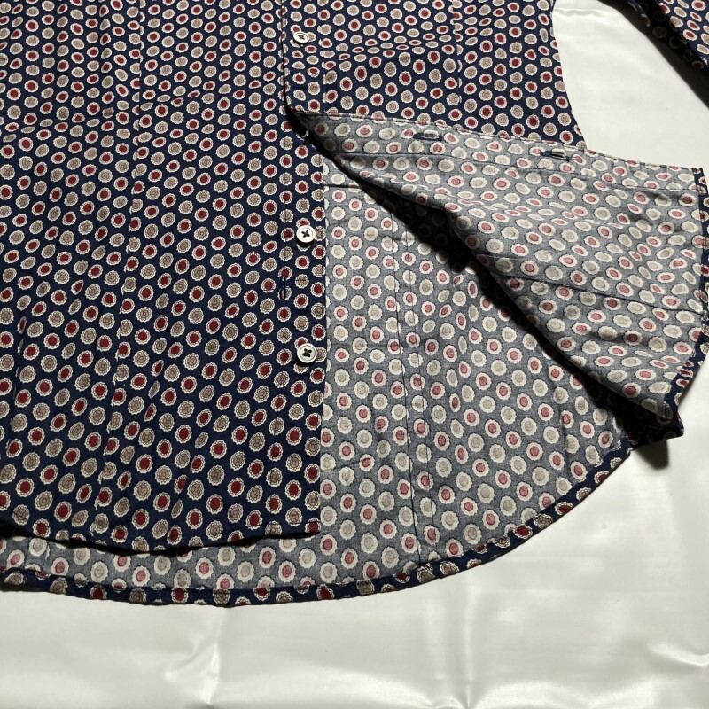 NO ID★名作★美ライン&モード優雅★ドット花柄 ペイズリー風 長袖シャツ 紺 2 ノーアイディー Y2K V系ロック 奇抜にならず上品