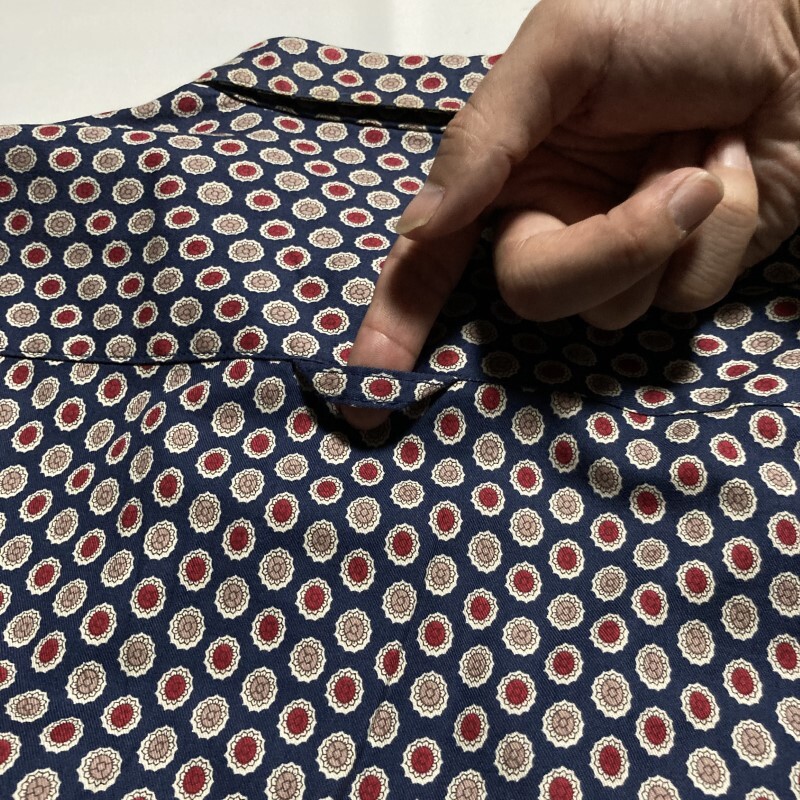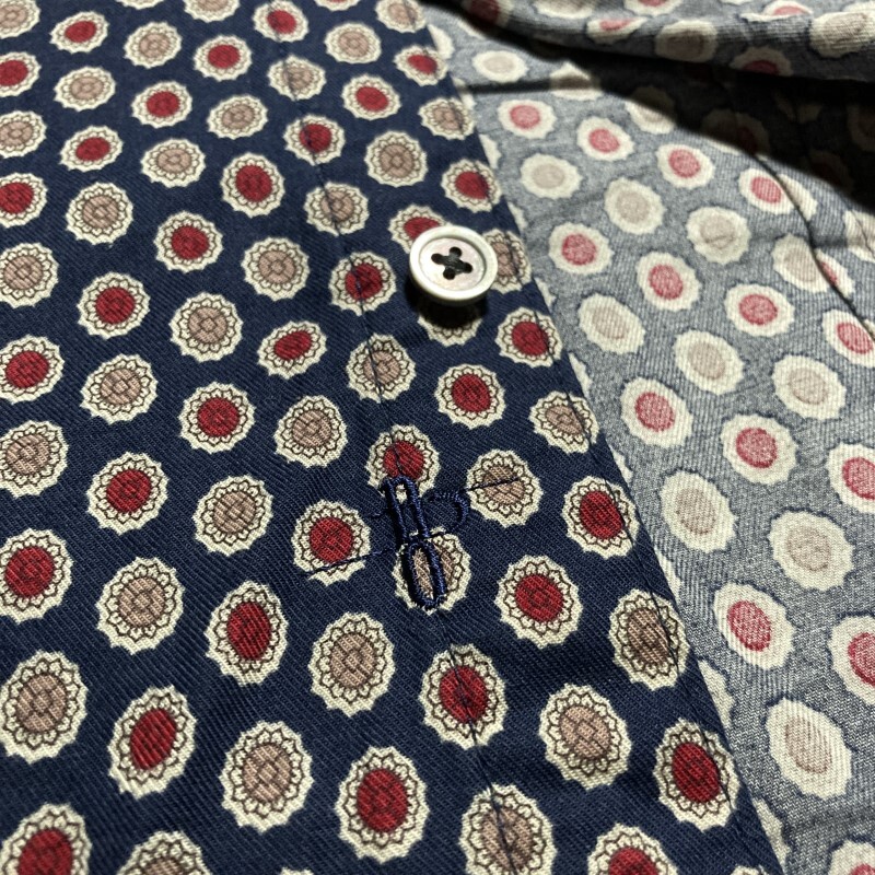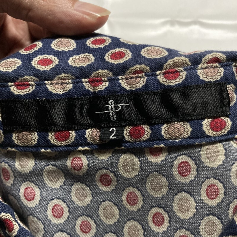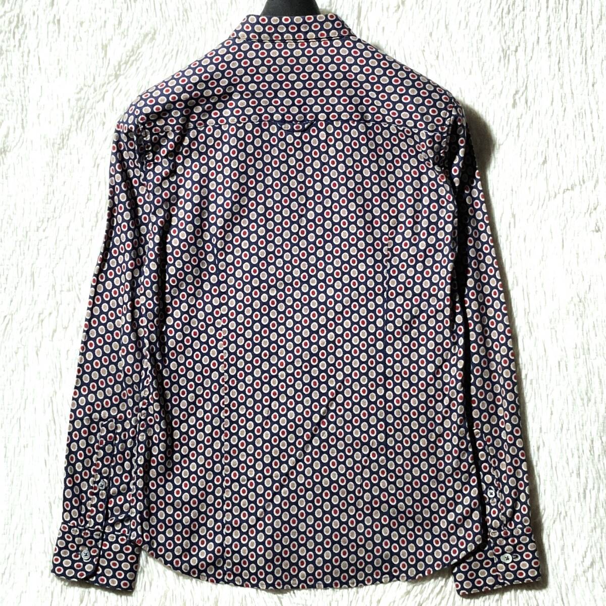 NO ID★名作★美ライン&モード優雅★ドット花柄 ペイズリー風 長袖シャツ 紺 2 ノーアイディー Y2K V系ロック 奇抜にならず上品