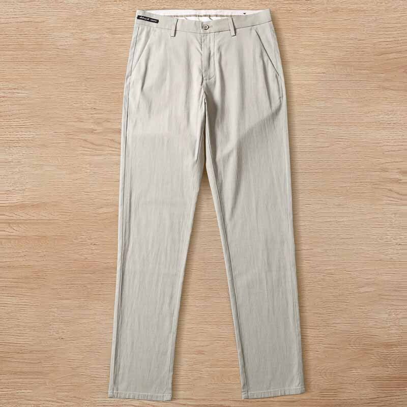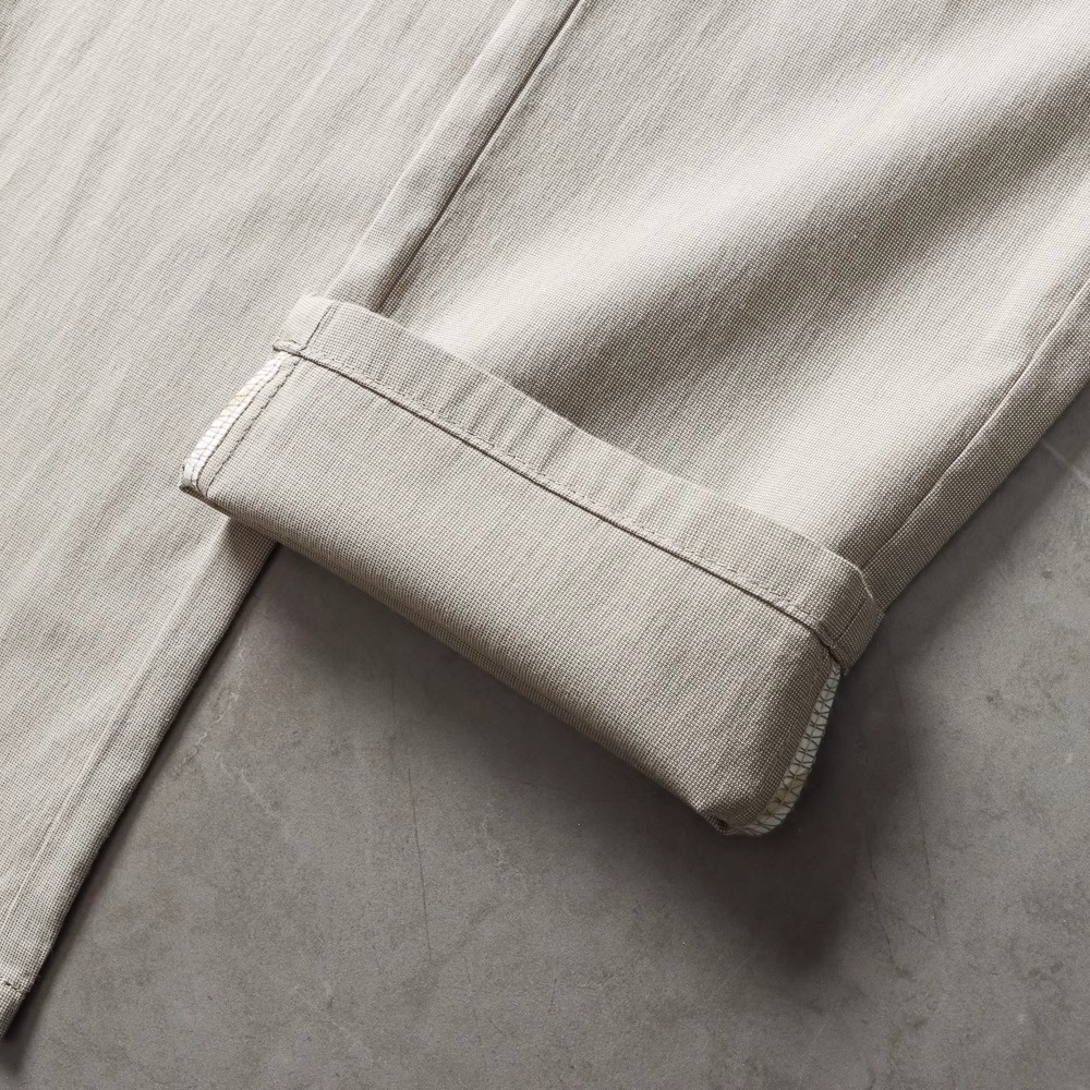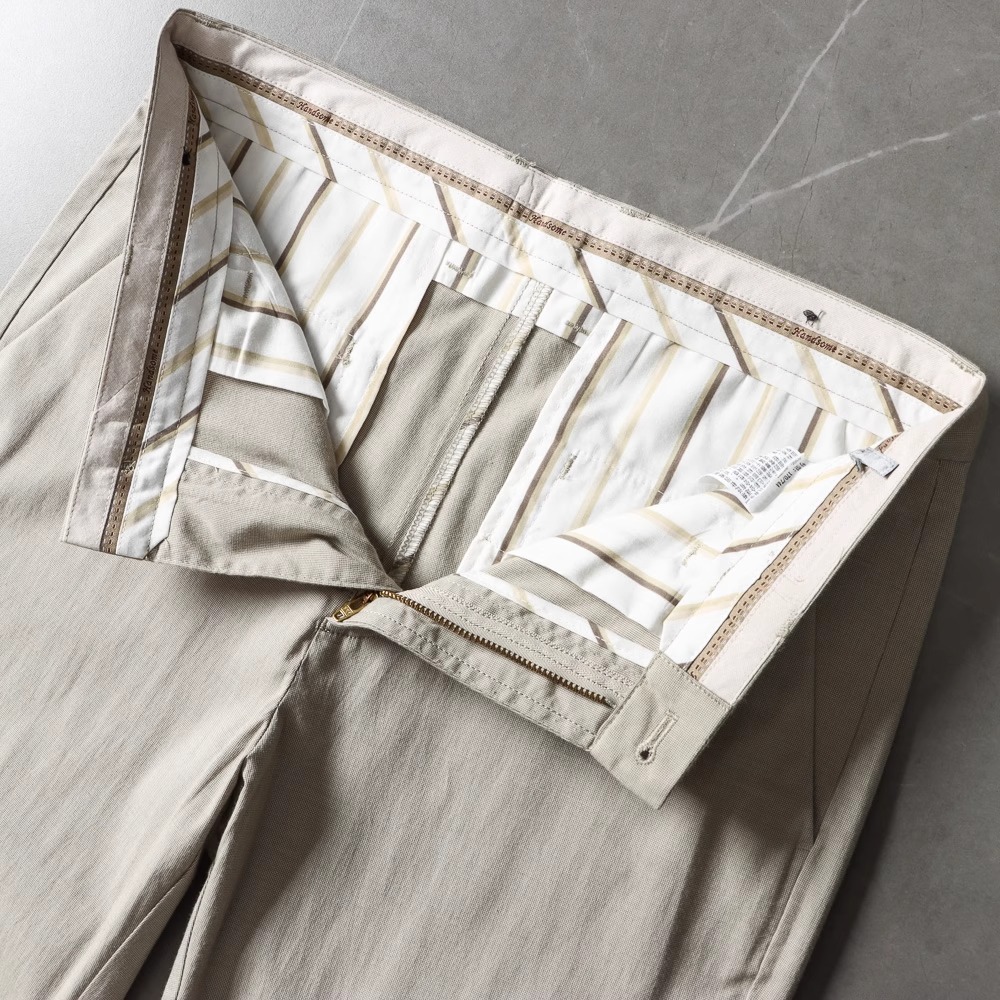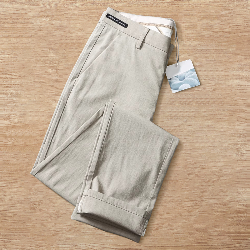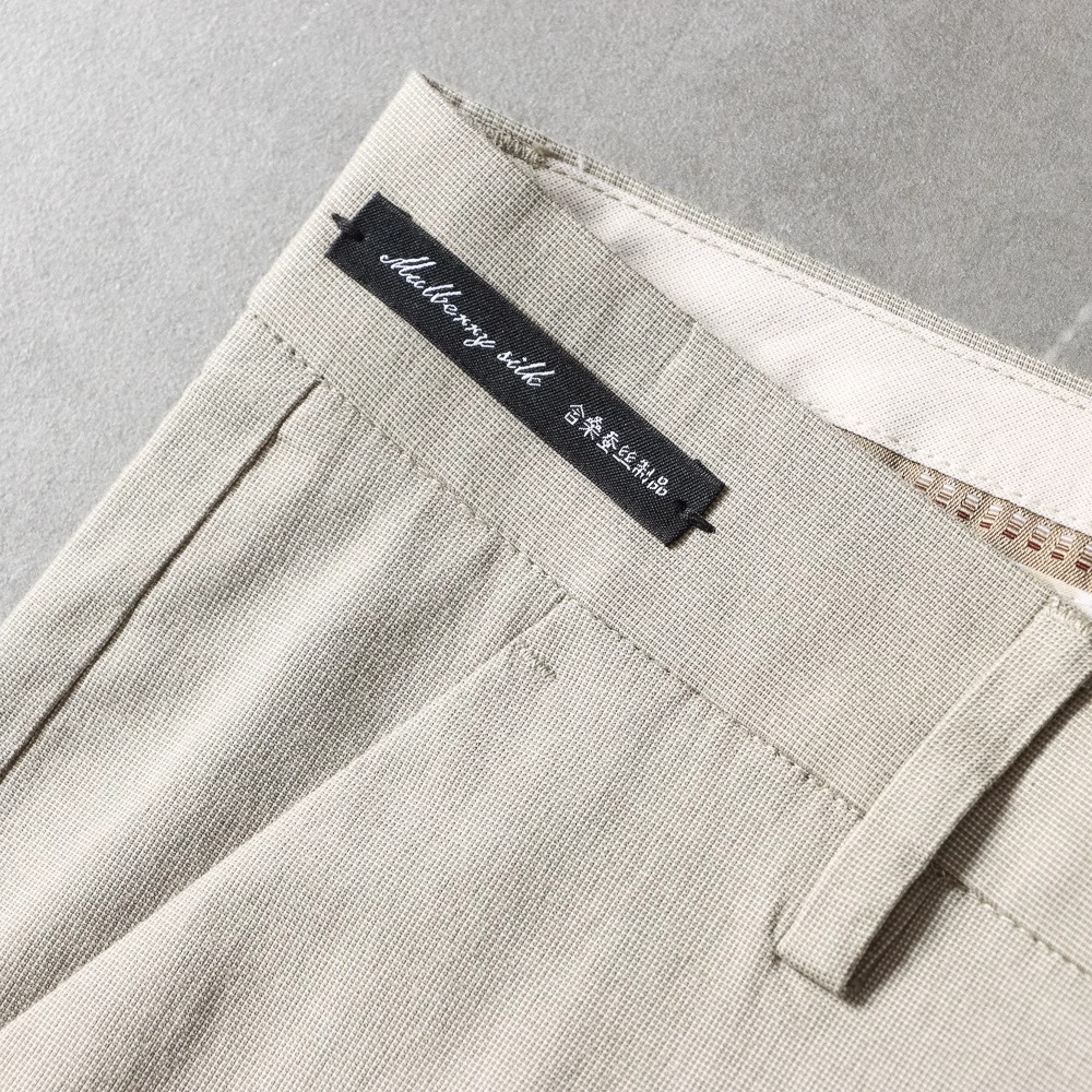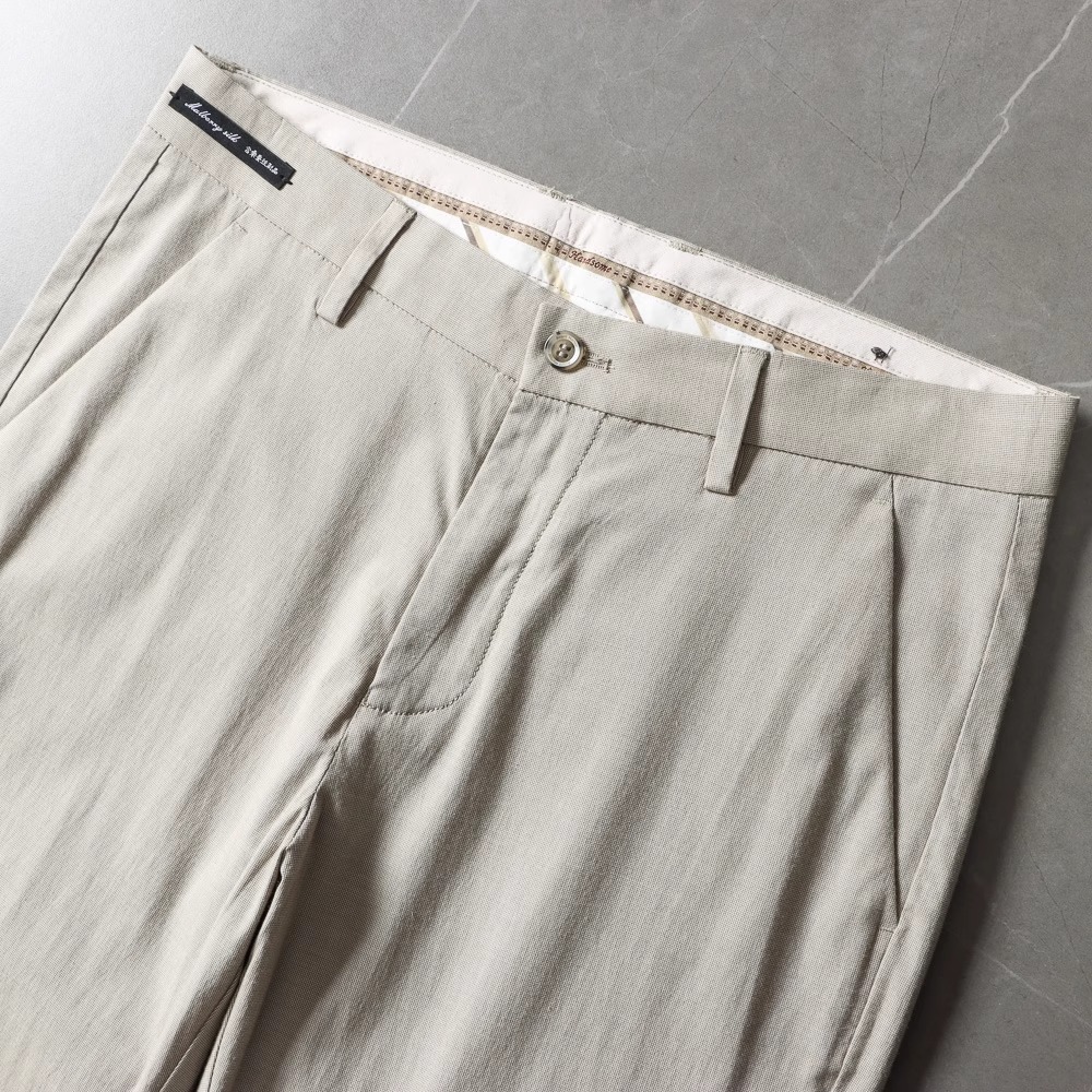 W0638-L カーキ色 新品 イージー スラックス シルク混 通気性 薄手 春夏 シンプルライフ イージーケア サマー パンツ メンズ テーパード