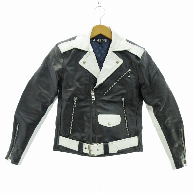JIMSINN ジムズイン ダブルライダース ジャケット バイカラー 白 ホワイト 黒 ブラック 32 約S メンズ
