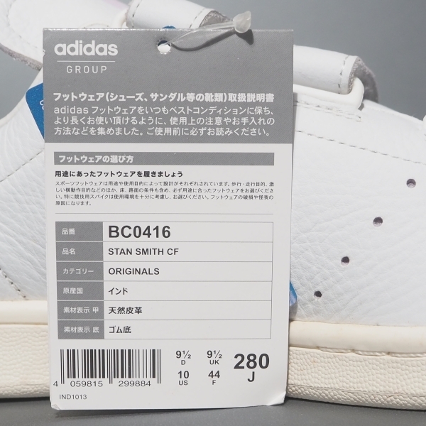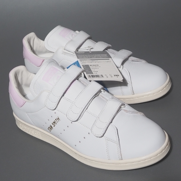 デッド!! US 10 / 28cm 新品!! 18年製 adidas Originals STAN SMITH CF スタンスミス 白xピンク 天然皮革レザー コンフォート ベルクロ