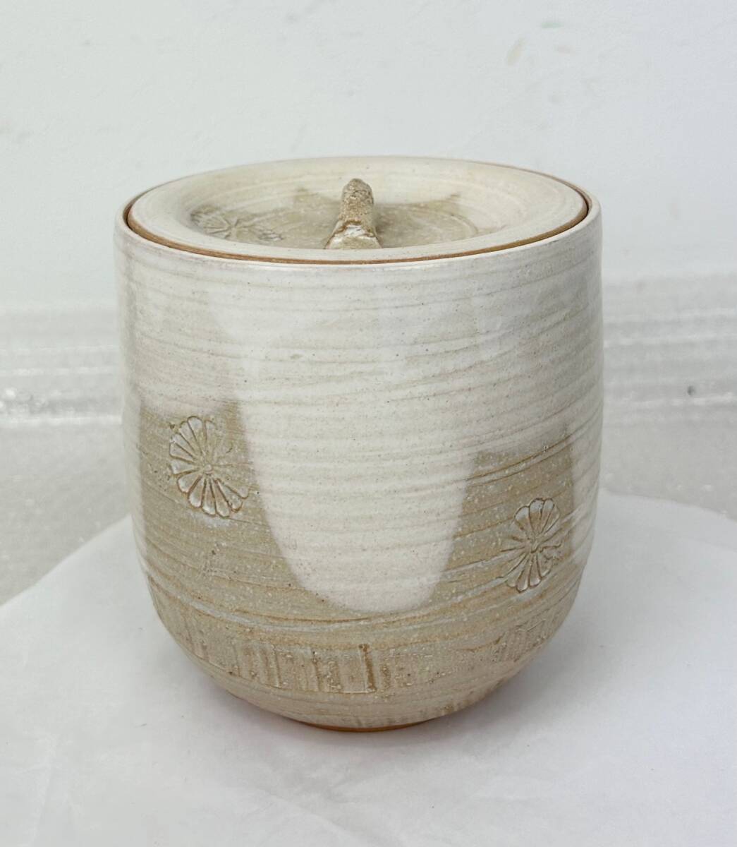 陶光作 白掛釉花文水指 茶道具 水指です。 共箱はありません。 サイズは画像でご確認ください。 傷、汚れは目立つ箇所を中心に撮影しております。 写真で確認できない部分がある場合もございますので、予めご了承下さいませ。 ※商品の特徴が分かりやすいように写真撮影を行っていますが、 ご覧いただいている画像と実物では色調等で違う印象を受けることもあるかと思います。 どうぞご容赦くださいませ。 |