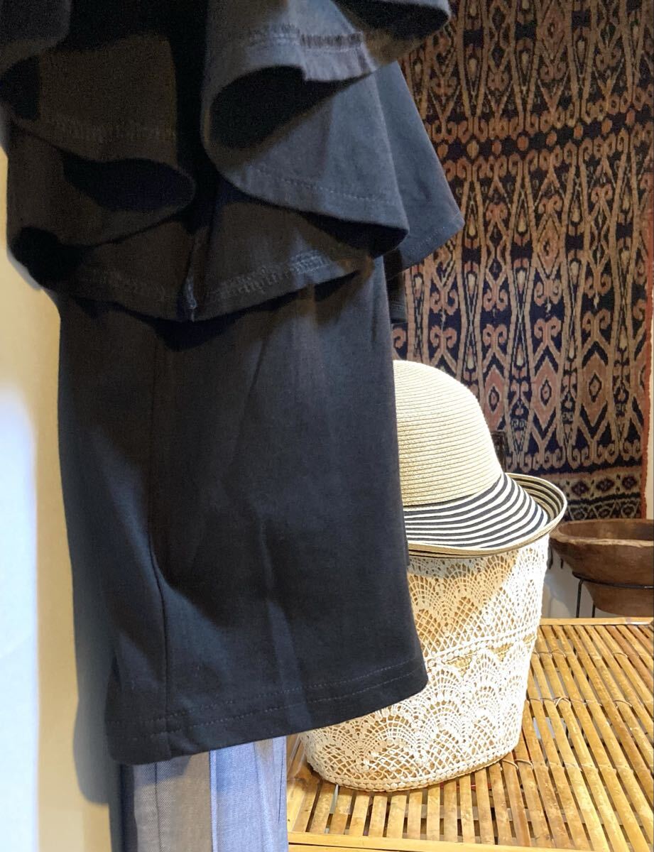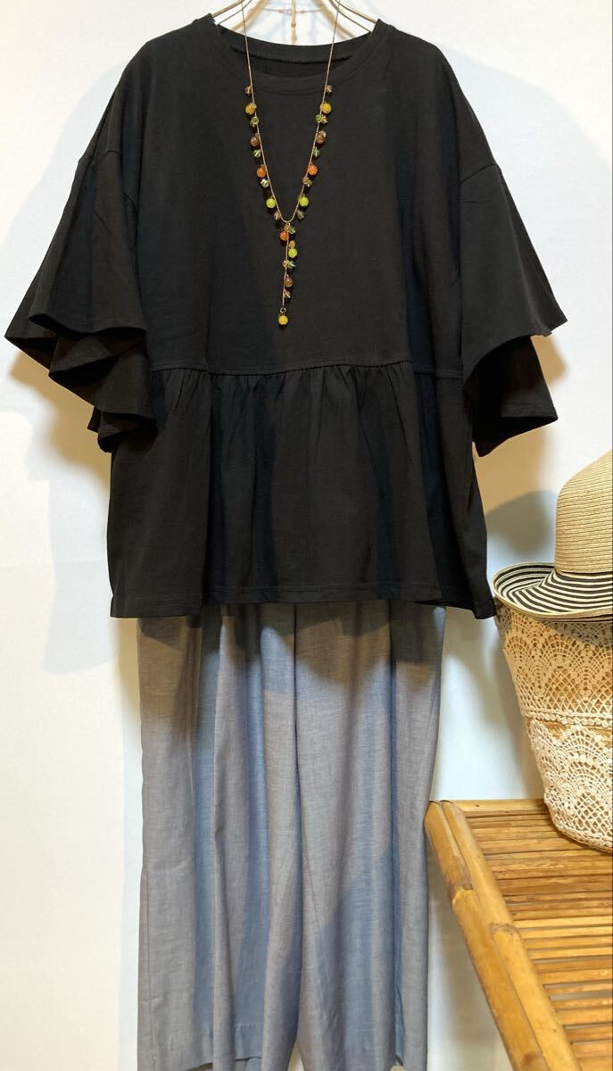送料無料♪新品 タグ付  *C100% フレアスリーブTシャツ 黒無地*  キュート・ゆったり♪   ユトリコ CHA-CA.
