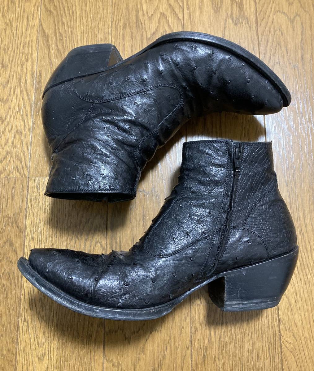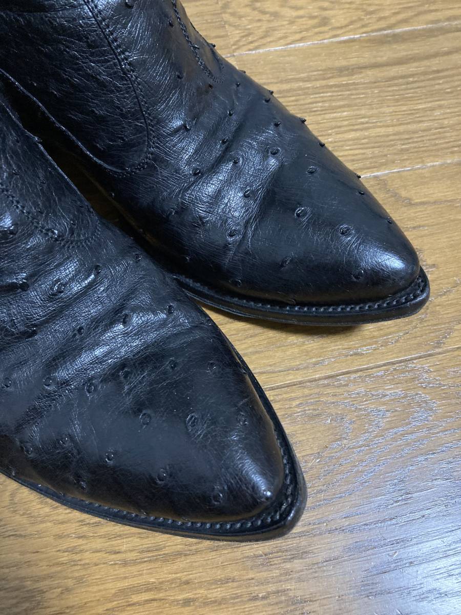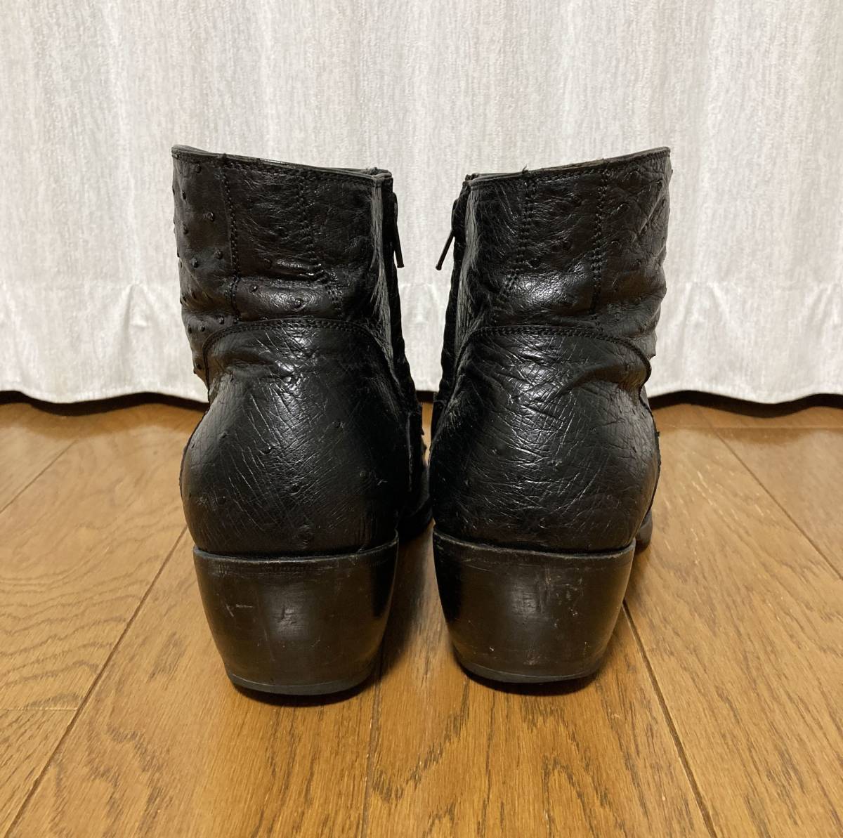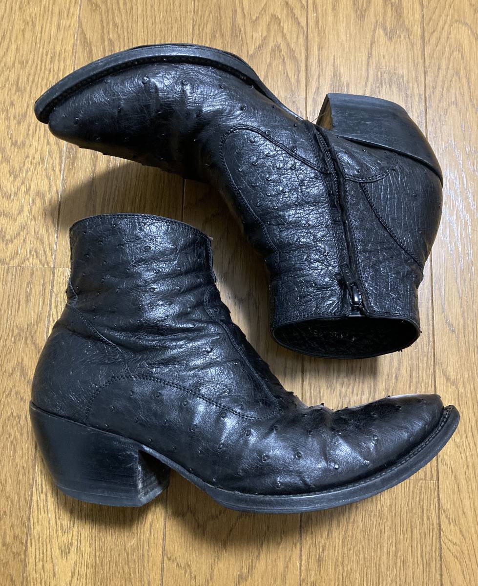 [gianni barbato] オーストリッチレザー サイドジップ ヒールブーツ 39.5 イタリア製 ブラック ジャンニバルバート