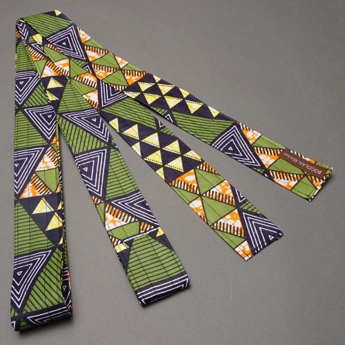 ナイロンベルトにアフリカンワックスで化粧をしたジェンベストラップです。
