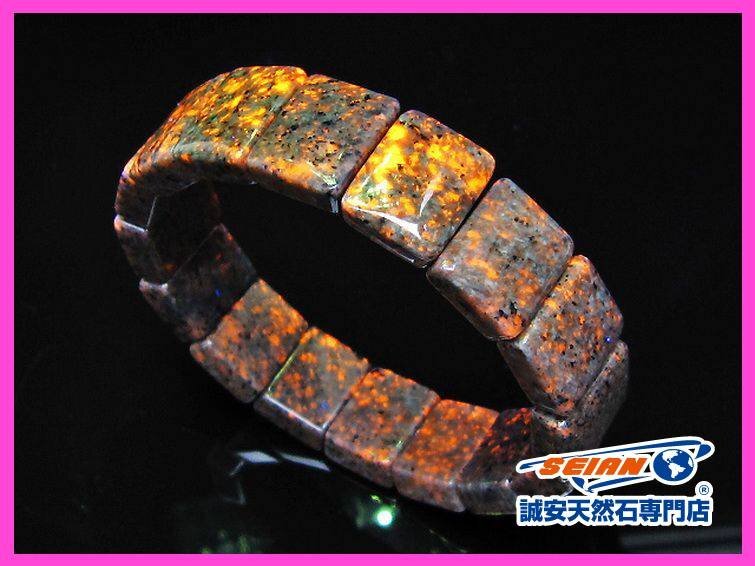 | ■商品名: ユーパーライト バングル ■商品ID: T216-2258 ■商品重量:約 44.1g ■商品サイズ: 高約:16mm 横約:13mm 厚約:7mm 内径円周約:165mm(±5mm) 【ユーパーライト】 ユーパーライトは、2017年にアメリカ・ミシガン州のスペリオル湖岸で発見された新種の鉱物です。 ユーパーライトは一見「ただの石」のように見えますが、長波長のUVライト(ブラックライト)をあてるとソーダライトの部分が強くオレンジ色に発光する石です。 この不思議な魅力にあなたも、間違いなく心を奪われることでしょう。 ■ユーパーライトが光る理由 岩石に蛍光性のソーダライトが含まれているためです。 蛍光性のソーダライトはブラックライト浴びせると光る特性があるために、オレンジやピンクに発光して見えるのです。まるで魔法のような効果ですよね。 ■名前の由来 ユーパーライトは、宝石・鉱石商のエリック・リンタマキ氏によって発見されました。 その名前の由来は、スペリオル湖に面するアッパー半島に暮らす人々の愛称「ユーパーズ」からきているそうです。 ■ユーパーライトには和名が無い? ユーパーライトは新しい鉱物であるために実は和名がまだありません。 学術名としては「蛍光性方ソーダ石含有閃長岩クラスト」と呼ばれているそうです。 ■日本では入手できない! ユーパーライトはアメリカ・ミシガン州の石です。 つまり日本で採掘されない石のため、輸入品として入手するより手に入れる方法はありません。 コレクターズアイテムと言える石ですので、手に入るチャンスが訪れた時は迷わずに手に入れた方が良いアイテムの一つでしょう。 ■ユーパーライトの効果 ユーパーライトは、ネガティブなエネルギーをポジティブに変え、願望を実現する効果があるといわれています。 また、不安や恐怖、悲しみなどの負の感情を和らげ、悪い習慣を断つことで、心や生活を安定させ、自信を持てるようになる効果があるといわれています。 ■こんなあなたへオススメ ・願望を実現したい方 ・不安や恐怖に立ち向かいたい方 ・ポジティブなパワーを求める方 ・過去の傷を癒したい方 ・創造的なアイデアを追い求める方 |