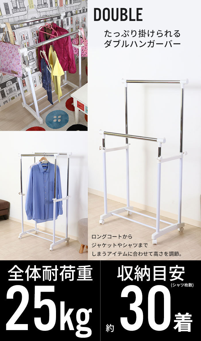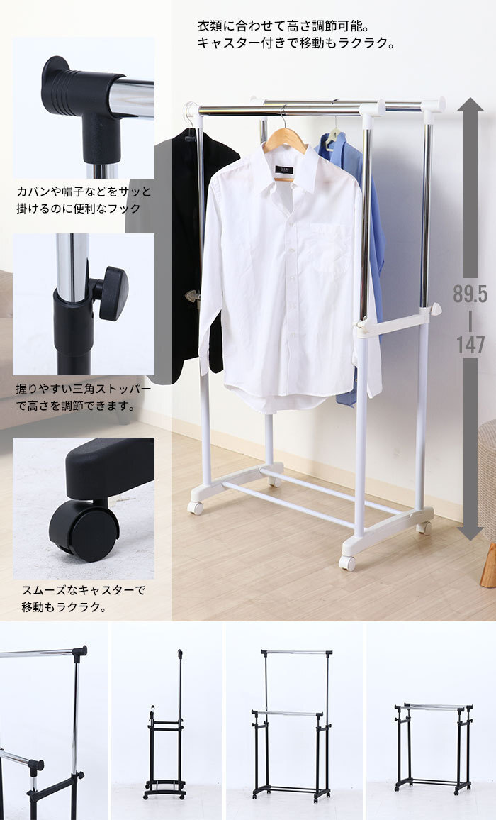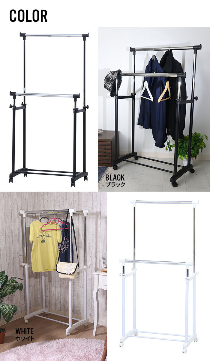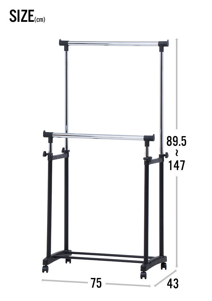 商品名 | ハンガーラック キャスター付 ダブル 伸縮 コートハンガー ブラック M5-MGKFGB00147BK |