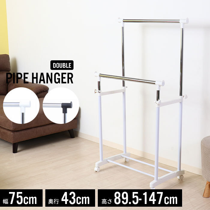 商品説明 | 着丈に合わせて高さが調節できるハンガーラック。 【商品仕様】 ■商品サイズ:[全体]約幅750×奥行430×高さ895~1470mm ■重量:約2.3kg ■耐荷重:25kg ■素材:スチール、エポキシ樹脂塗装 ■組立区分:お客様組立品 |