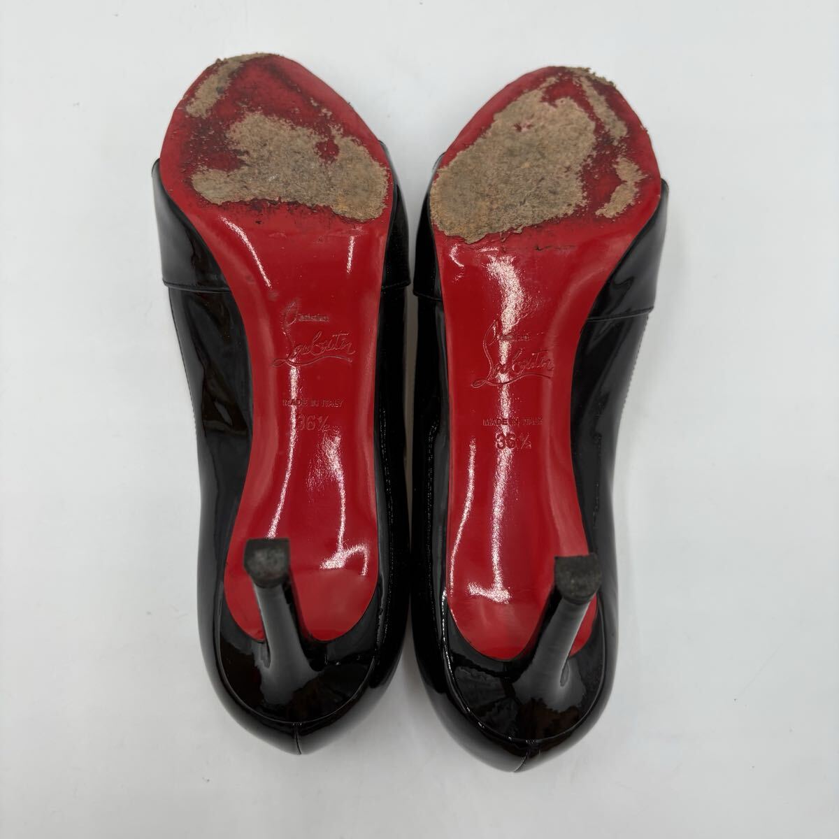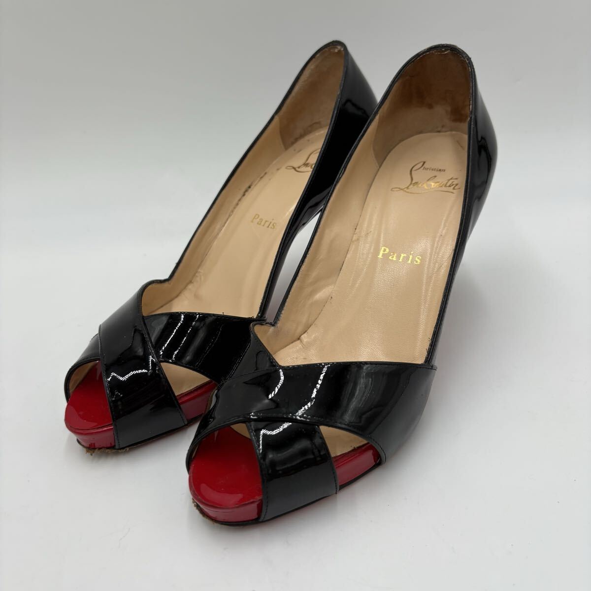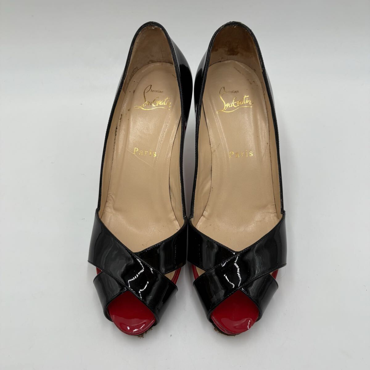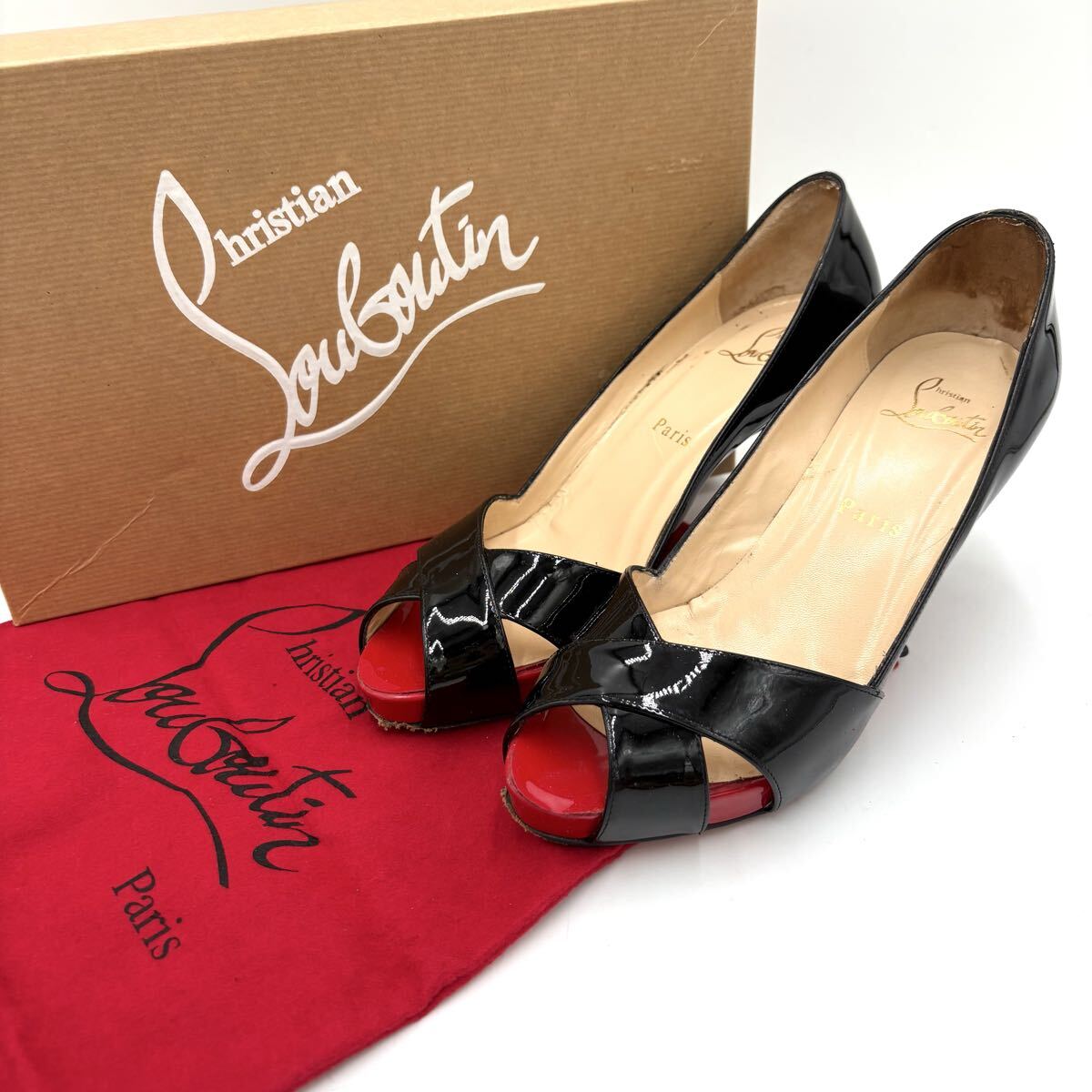 1A ■ 付属品完備!! 'イタリア製' Christian Louboutin クリスチャンルブタン 本革 パテント オープントゥ ヒール パンプス 36.5 23cm 靴