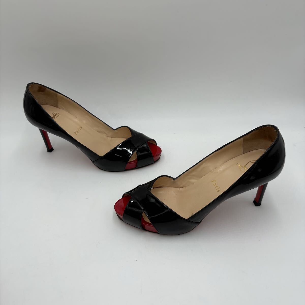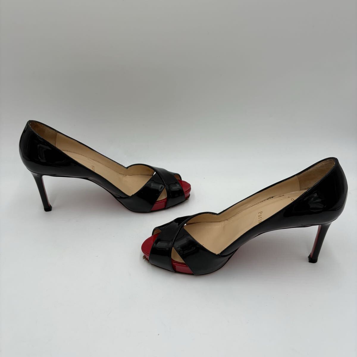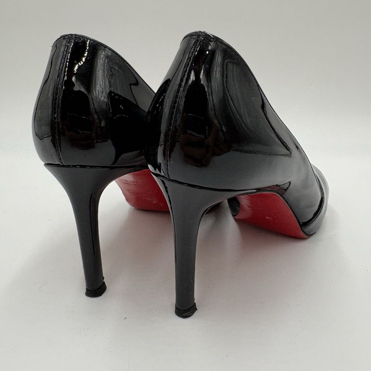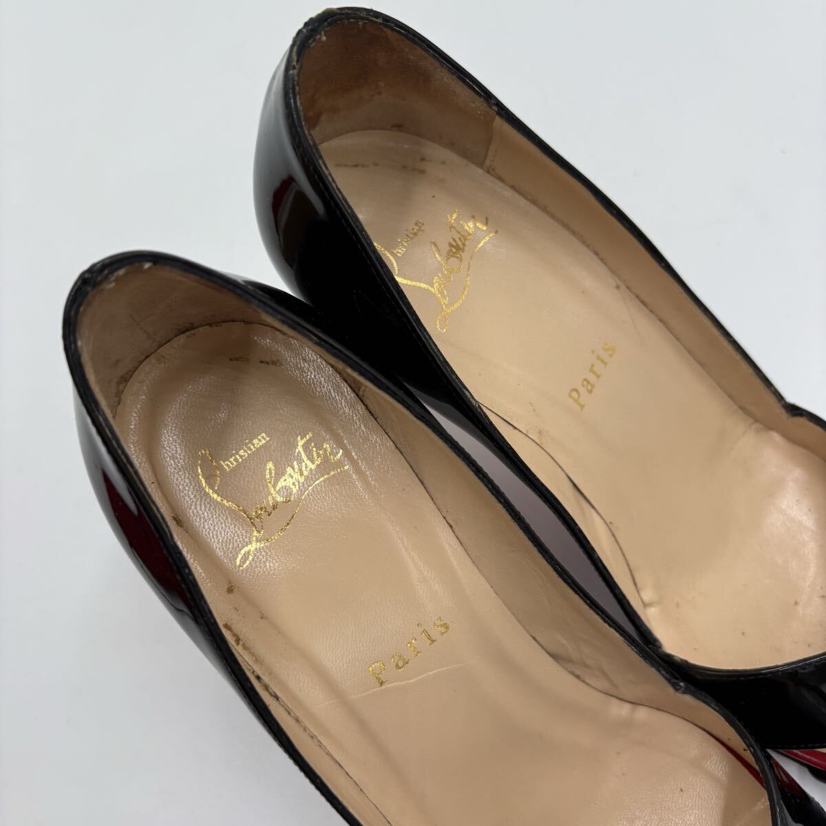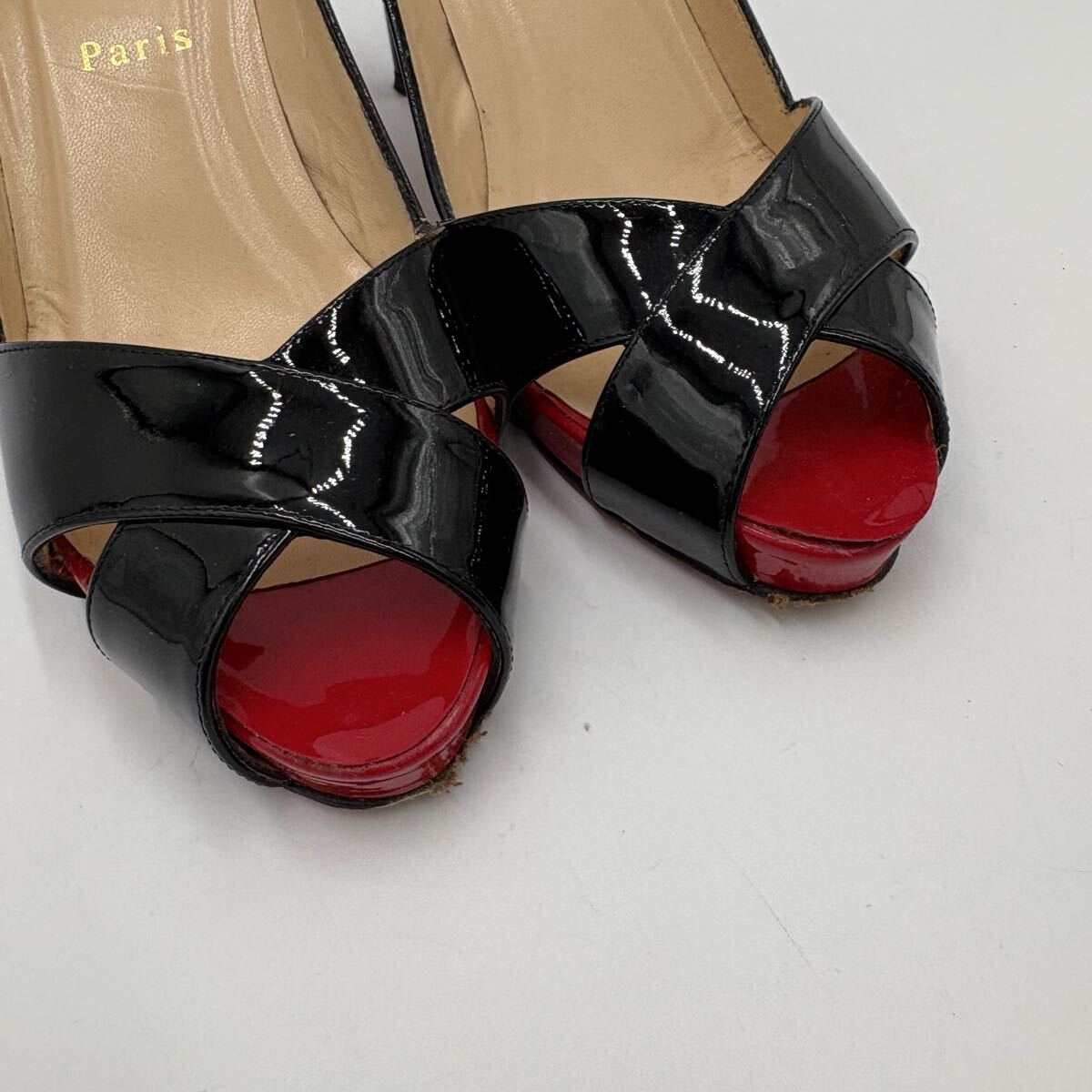 1A ■ 付属品完備!! 'イタリア製' Christian Louboutin クリスチャンルブタン 本革 パテント オープントゥ ヒール パンプス 36.5 23cm 靴