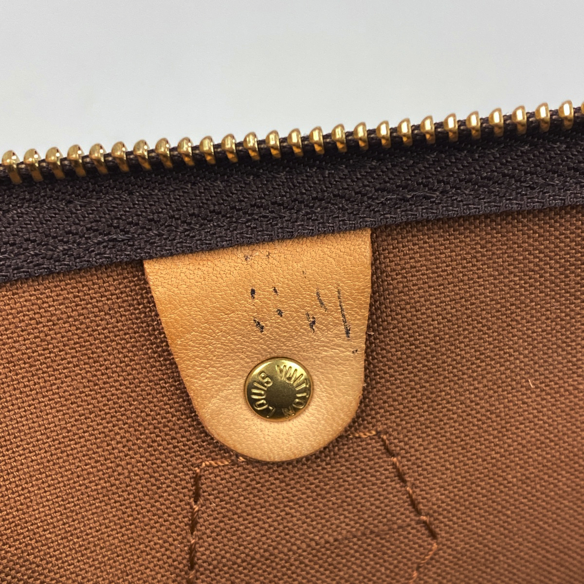 《全体》型崩れ、生活臭、スレ、キズ、シワ、汚れ 《内側》ペン跡 《ヌメ革》ヤケ、シミ、毛羽立ち 《ハンドル》ひび割れ 《金具》小キズ 《ファスナープル》亀裂 |
