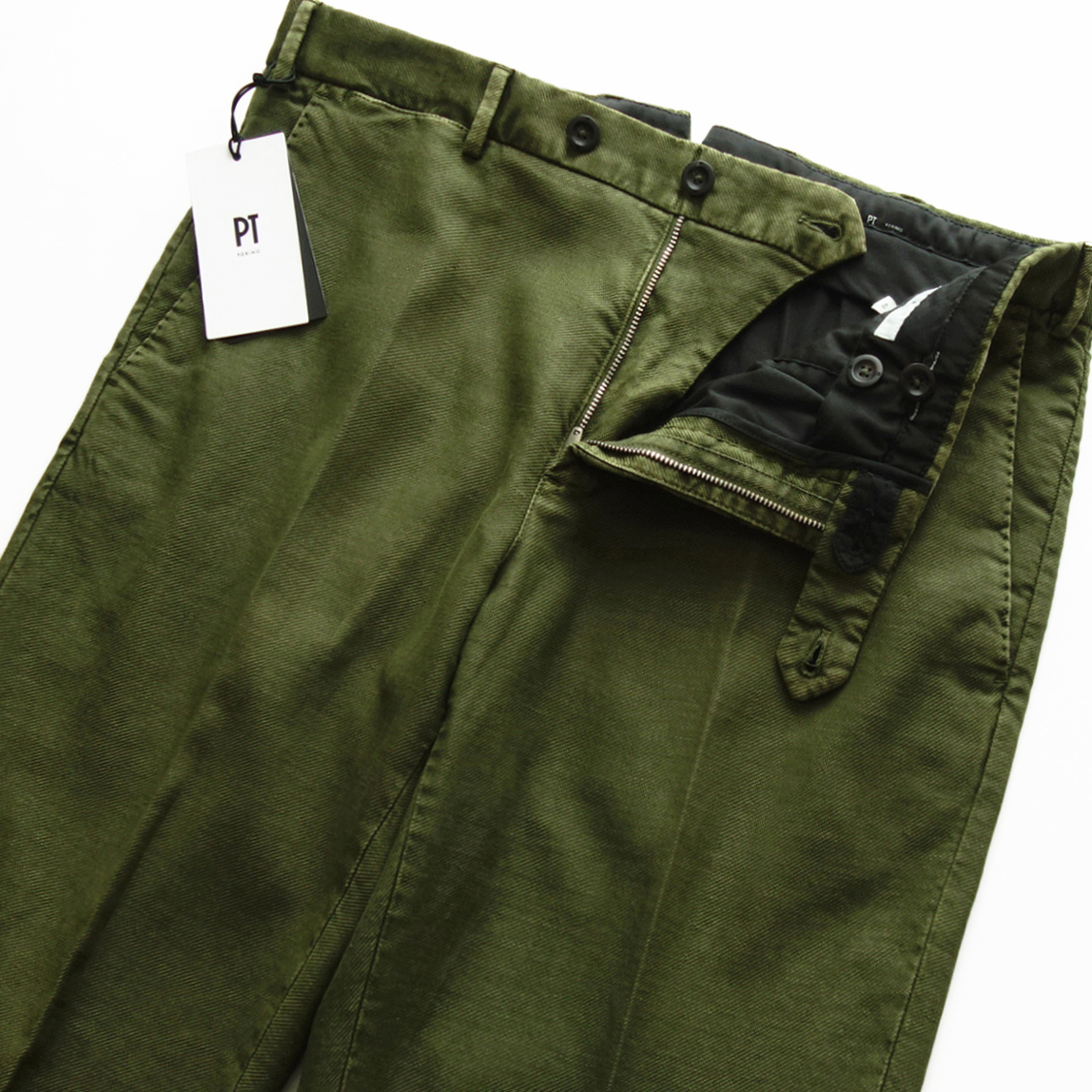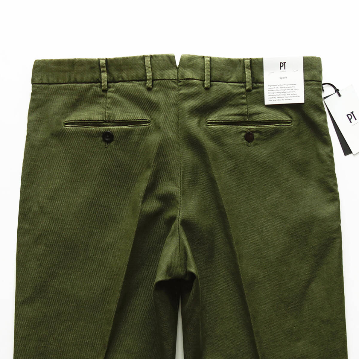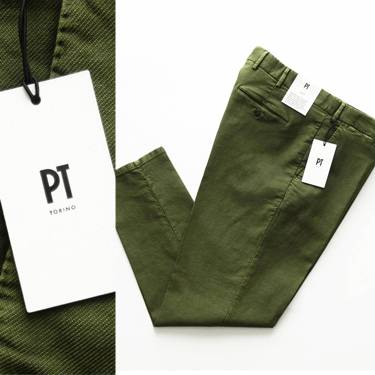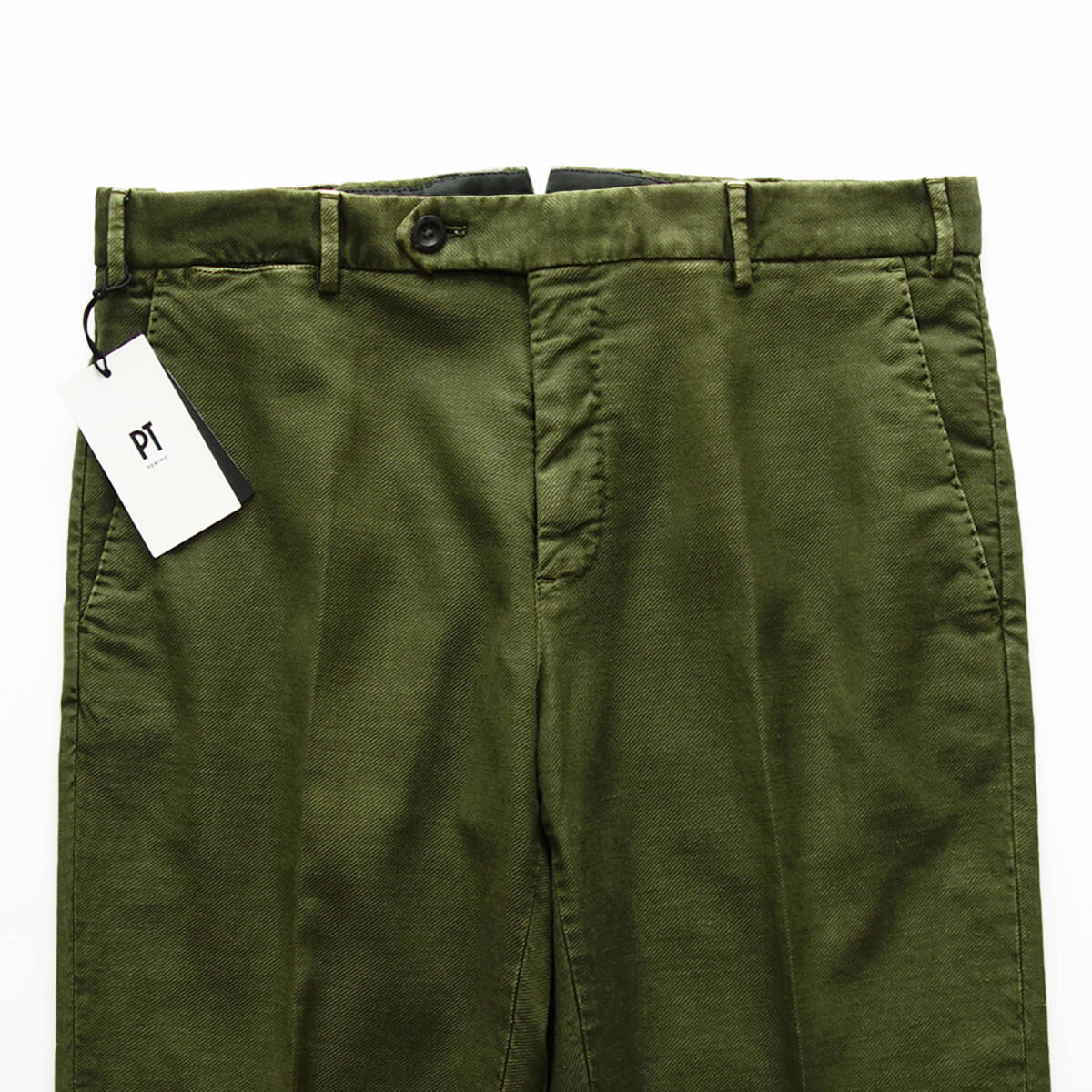 【 PT TORINO ピーティートリノ 】 新品 春夏 製品染めコットンリネンストレッチツイル美脚テーパードチノ Spark カーキ 48 44,000円