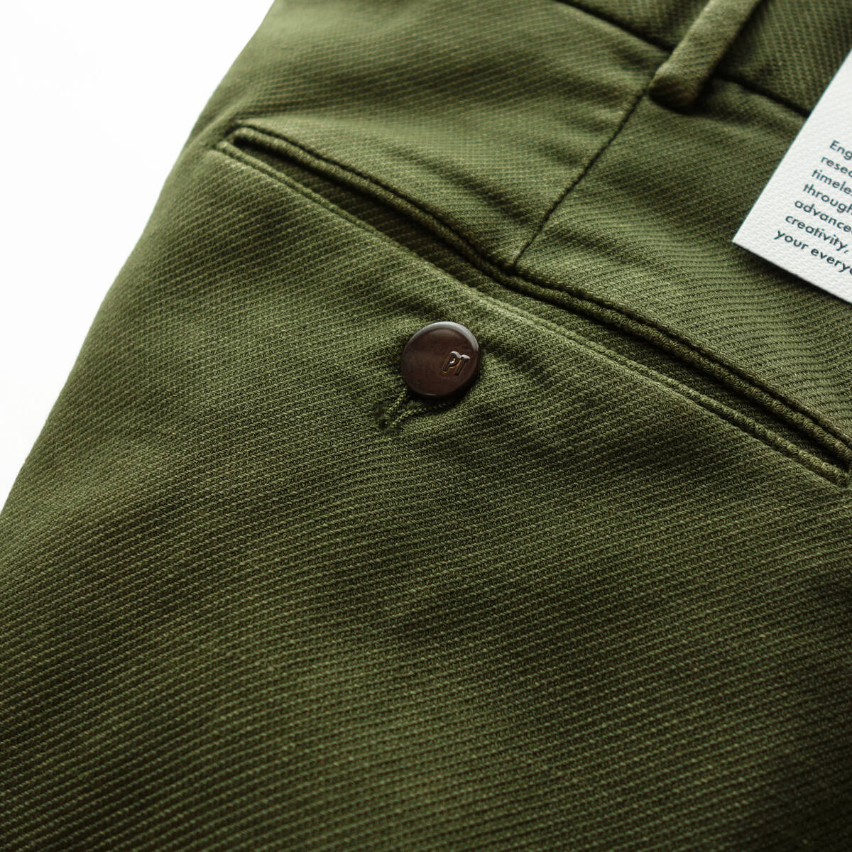 ご紹介するのは、春夏用のコットンリネンファブリックで仕立てられたカジュアルトラウザーズです。一見なんてことのないチノパンですが、イタリアブランドが作る従来のチノパンとは一線を画します。高度なテーラリング技術に裏打ちされたイタリアンチノをベースにしつつも、特殊なガーメントダイによってフェード感を出し、アメリカンチノのようなラフでこなれ感のあるチノパンに仕上げています。流行に左右されないタイムレスなスタイルでありながら、やや深めの股上で、ワタリ(太股)に程よいゆとりがあり、裾へと絞り込んでいくテーパードシルエットによって“今っぽさ”と“美脚”を両立しているところにPTらしさが光ります。もたつきがなく自然にフィットするヒップラインや短めのレングスもいい感じです。イタリアブランドならではの上質な仕立てに裏打ちされた美脚チノですが、こてこてのイタリアっぽさがないので幅広いコーディネートに合わせられるところがミソ。脚を通した瞬間に“そうそう、こんなチノパンが欲しかった”となる、従来のチノパンとは一線を画する大人が大満足できる一本です。