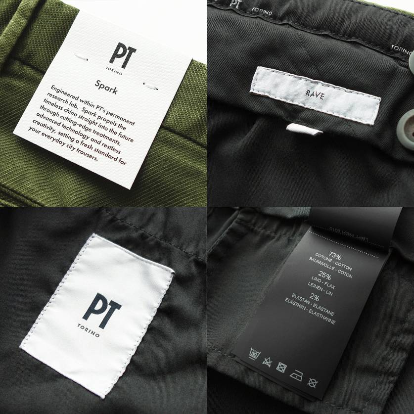 イタリアきってのパンツ専業ブランド、PT TORINO(ピーティートリノ)。以前はPT01(ピーティーゼロウーノ)というブランド名でしたが、創業地であるトリノへのトリビュートとともに“究極のパンツを創る”という強い意志を込めてこの名に変更されました。50年以上にわたって培ってきた生地への深い造詣を活かしつつ、メンズクロージングにおいてもっとも重要なアイテムはパンツというコンセプトのもと専業ブランドとしての技術とノウハウを注ぎ込んでいます。PTのパンツにはそれぞれのモデルごとにテーマが設けられており、独自のデザインでその世界観を表現するというパンツの可能性を広げる多様性に加え、そこには美しいヒップラインとともに美脚効果を備えた完璧なシルエットが貫かれています。