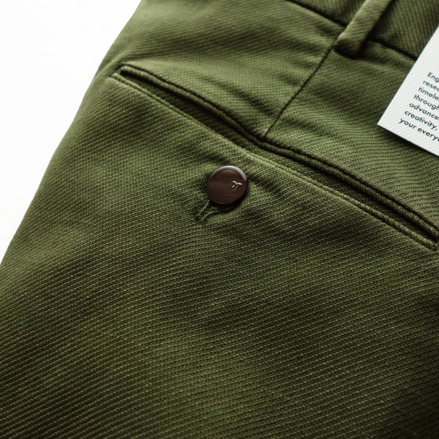 色は「オリーブ(Y445)」です。製品染めならではの、深みのある落ち着いた色味のオリーブになります。