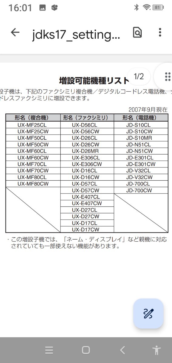 その他対応機種 UX-D16CL/CW UX-D17CL/CW UX-D26CL/CW UX-D56CL/CW