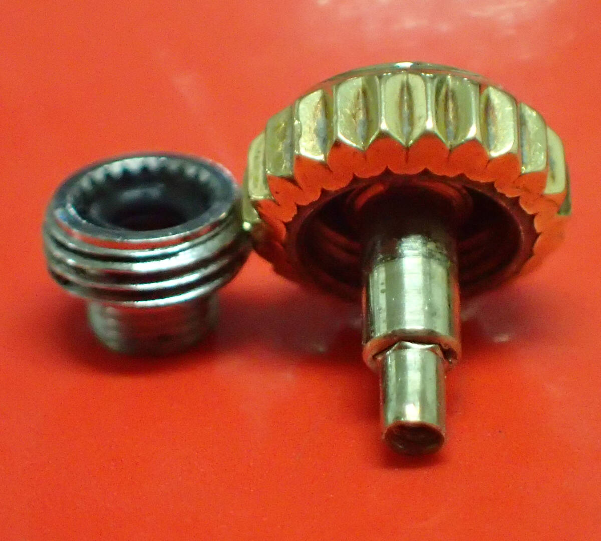 中古リューズの約7割はねじ込みが0.5から1.0回転未満で交換しても長くは使えません。当店では約1.5回転(時計回り)以上のリューズのみを選別し販売しております。回転数は新品のチューブで計測しており、損耗したチューブの場合は回転数が減りますのでチューブセットのご購入をお勧め致します。