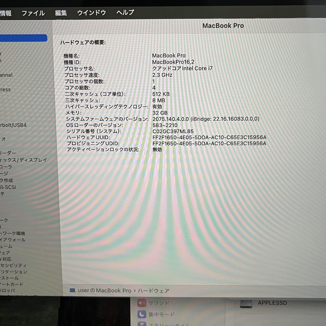 Apple MacBook Pro 13インチ 2020 Core i7-2.3GHz/RAM16GB/SSD512GB Thunderbolt 3ポートx4(282)