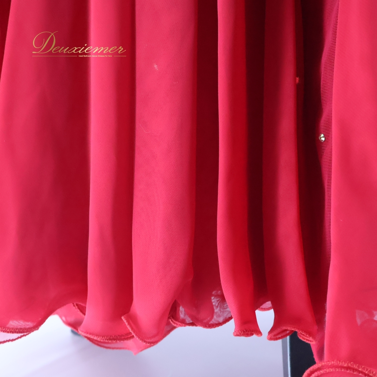 | 【商品名】社交ダンス 衣装 ワンピース ドレス 【サイズ】表記無し 平置き実測:総丈約123cm(裾~肩部まで)、身幅約34cm、ウエスト約30cm~ ※実測の為、多少の誤差はご了承ください 【仕様】 ・背面ファスナー仕様 ・レオタード無し ・上半身のみ伸縮性有り ・肩パッド無し ・胸パッド無し ------------------------------------ 【ポイント】 ▽深い赤色の高級感のある色味 ▽落ち感のあるスカートで上品なドレス ▽スカート3枚重ね ------------------------------------ 【撮影時使用トルソー】 種 類:女性用トルソー9号 (一般的に使用されるサイズです) サイズ:肩幅約37cm、バスト約88cm、ウエスト約66cm、ヒップ約89cm |