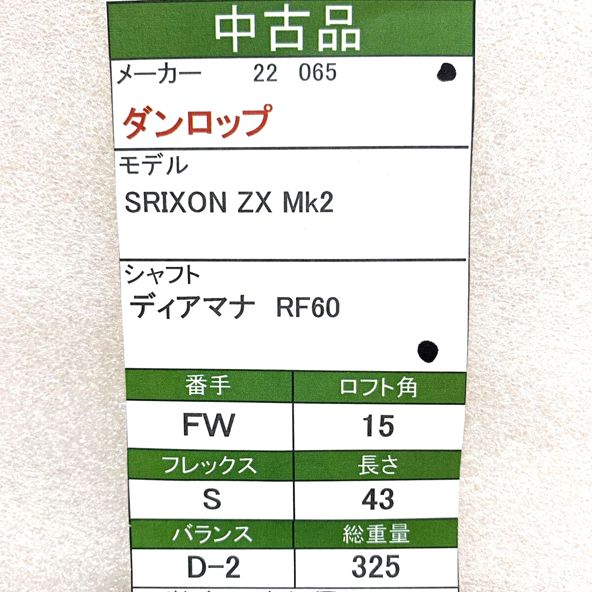 【即決価格】【FW】ダンロップ/スリクソンZX MK2/15度/リシャフト ディアマナRF60/FLEX S/カバー無し