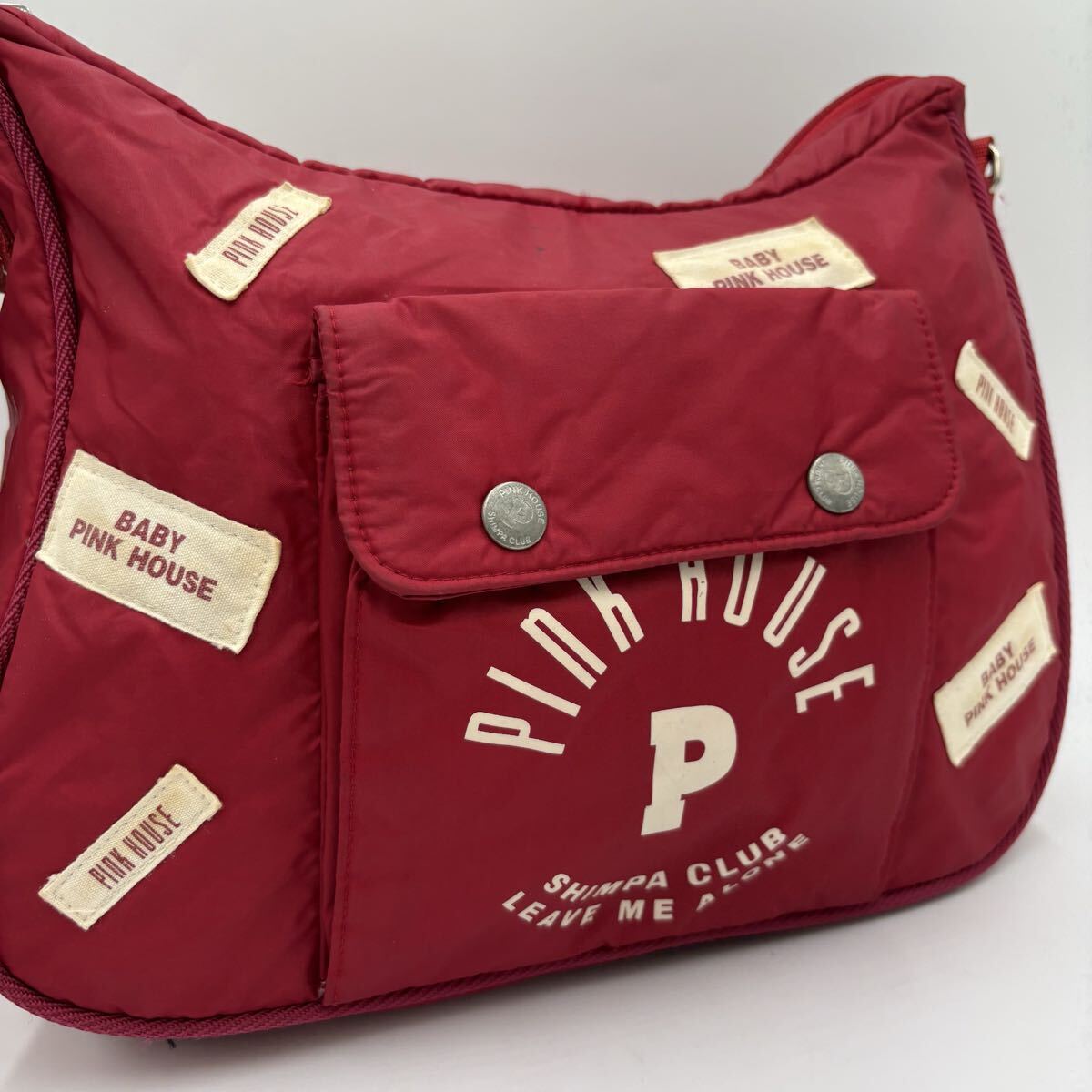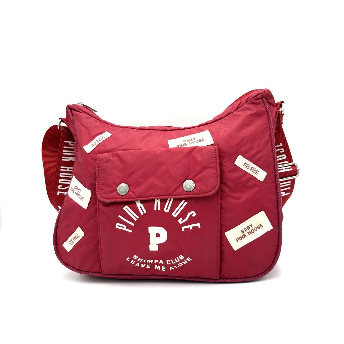 L ■ 洗練されたデザイン!! '使い勝手抜群' BABY PINK HOUSE ピンクハウス ロゴ入り ショルダーバッグ 斜め掛け鞄 ボディバッグ カバン