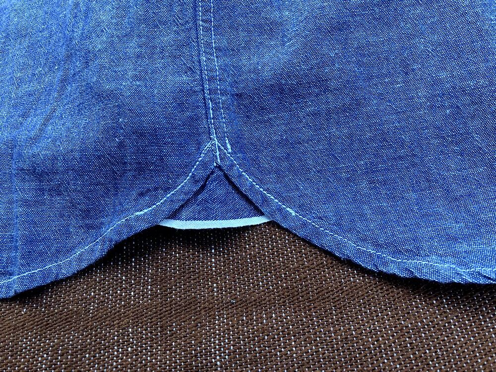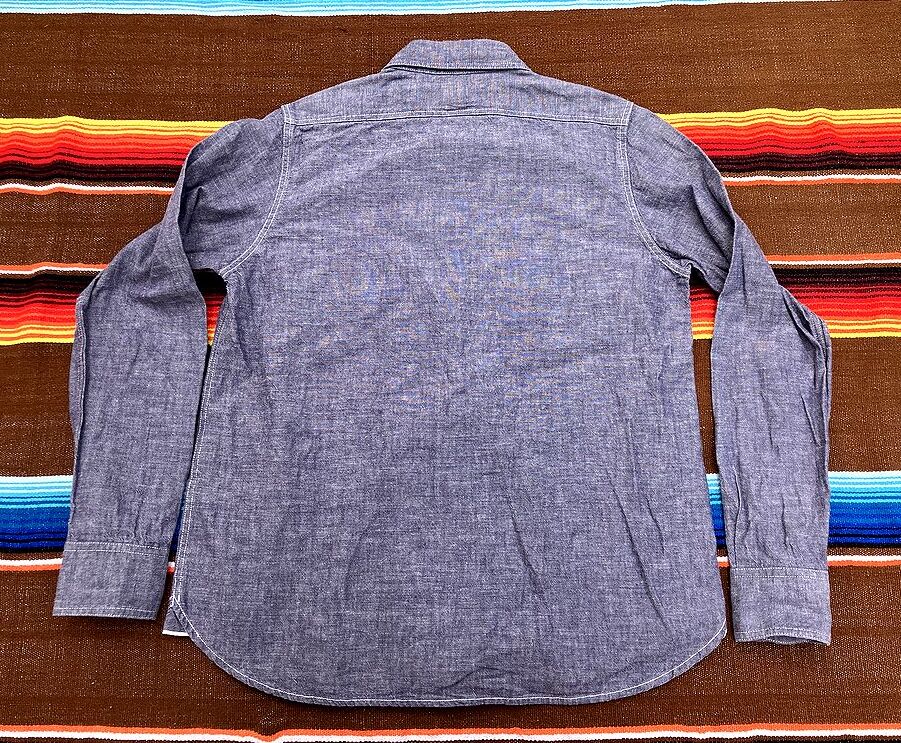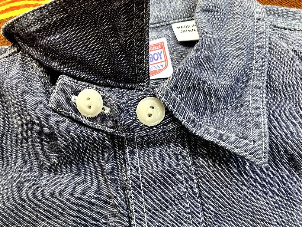 ビンテージのビッグマックのようなタグで、チンストラップやマチが付いたビンテージをモデルにしたシャンブレーシャツです。