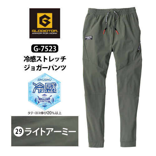 コーコス グラディエーター ジョガーパンツ【 G-7523 】■Mサイズ■ ライトアーミー色 ストレッチ 接触冷感 UVカット ≪ネコポス発送≫