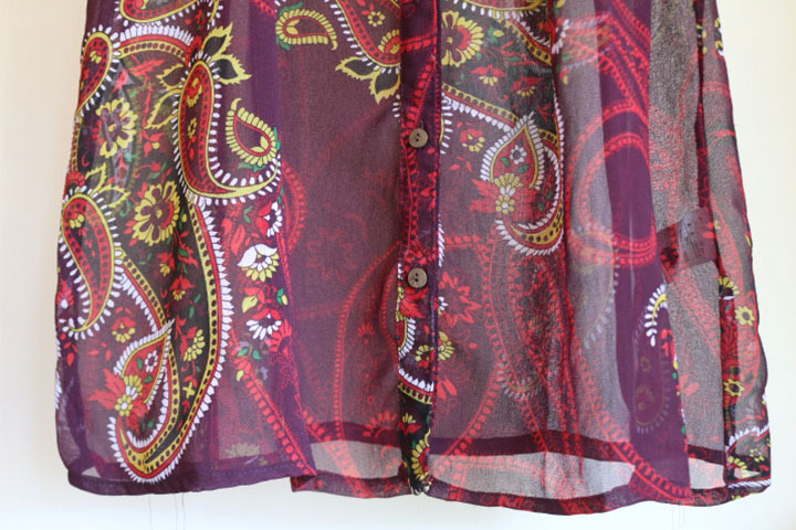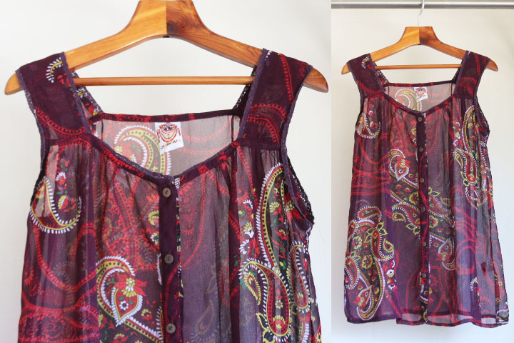JAGANNATH ジャガンナート シフォン キャミ ノースリブ アジアン エスニック ペイズリー チュニック 花柄 バーガンディ インド製 透け感