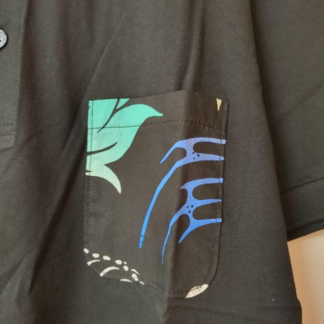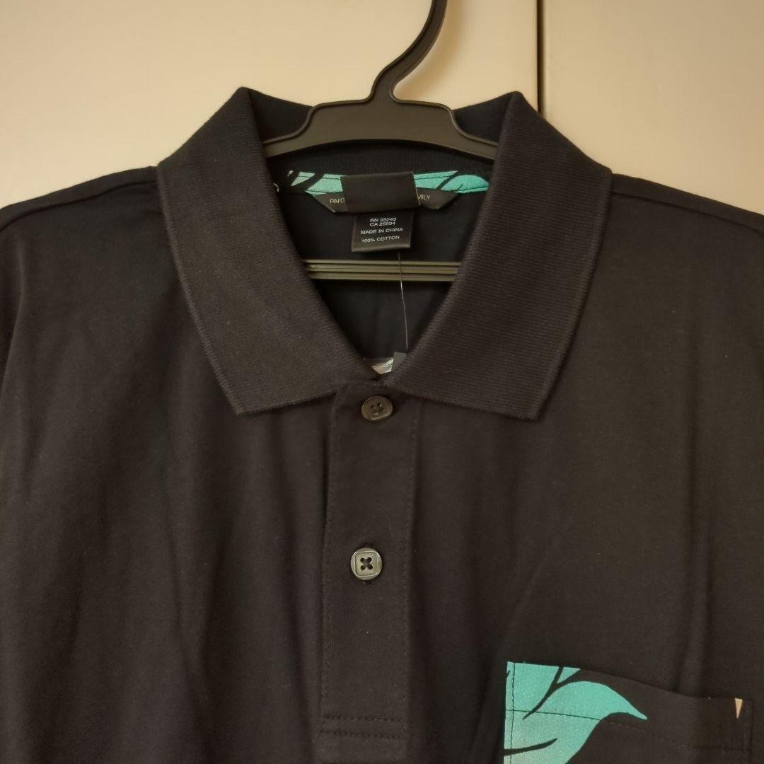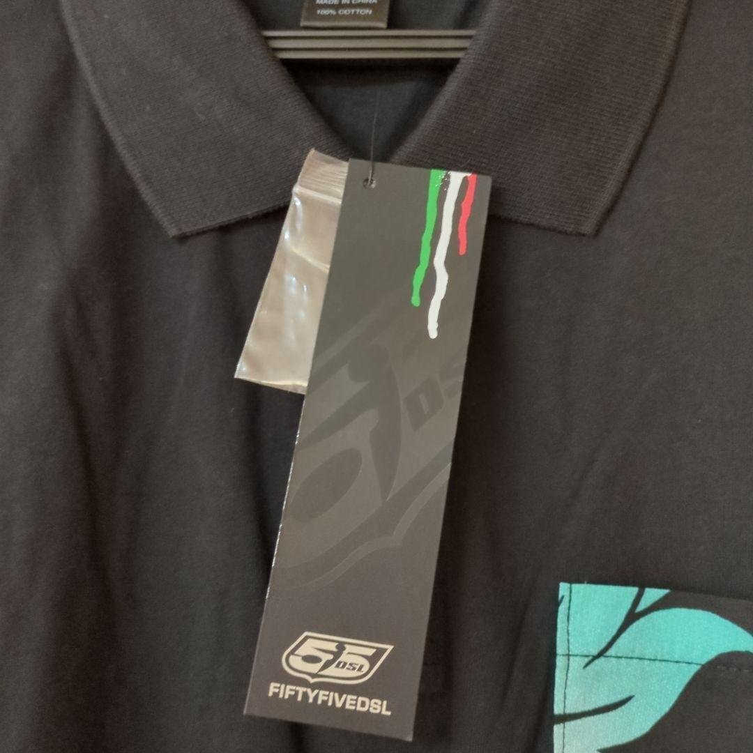 55DSL(フィフティファイブ ディーエスエル)TALEC ポロシャツ クロ(M)です。 ■サイズ 肩幅約44cm,身幅約51cm,着丈約69cm,袖丈約20cm ■素材 コットン100%(綿天竺) ■特徴 胸ポケットに和柄調のプリントがクール 前身頃より後身頃より約2cm長く両脇に約4cmのスリット入り | ||||||
