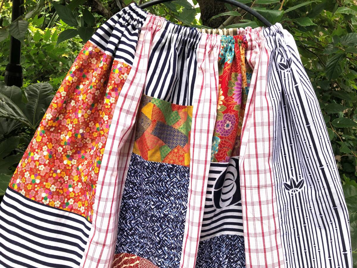 新品 ハンドメイド 着物リメイク 浴衣リメイク パッチアーク フレアスカート・ロングスカート 綿100% 春夏物 送料230円